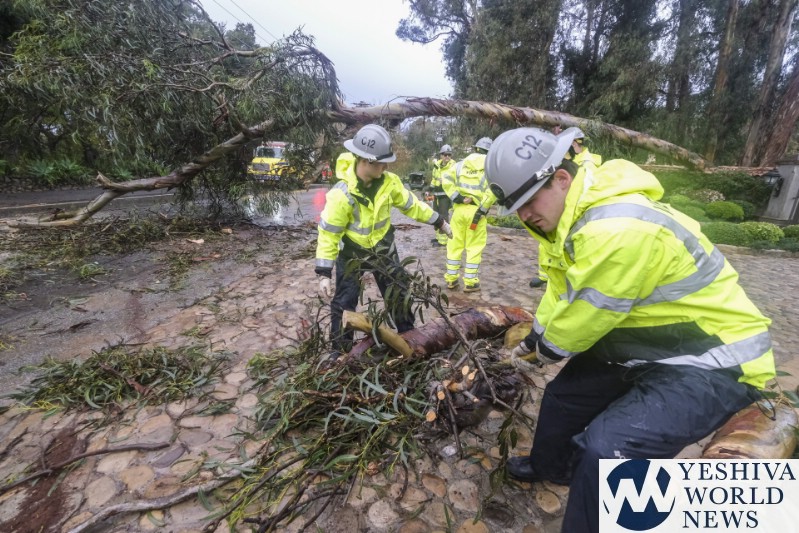 In San Francisco, a tree fell on a commuter bus on Tuesday without causing injuries and lightning struck the city’s iconic Transamerica Pyramid building without damage. High winds also ripped away part of the roof on a large apartment building.