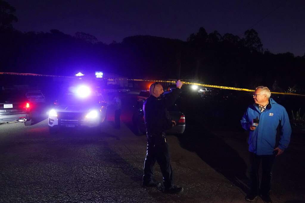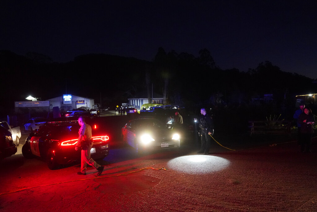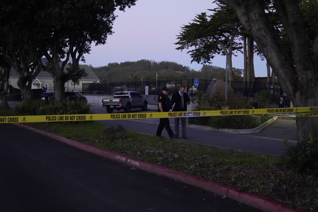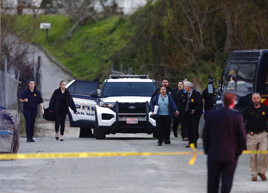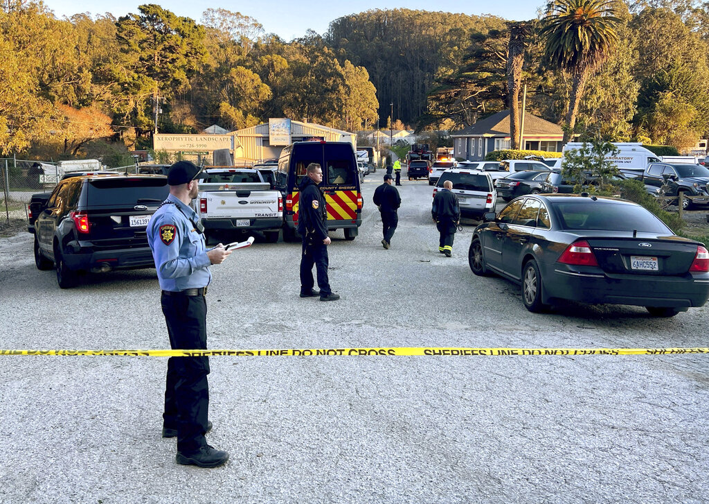 Law enforcement personnel control the scene of a shooting Monday, Jan. 23, 2023, in Half Moon Bay, Calif. Multiple people were killed in two related shootings Monday at a mushroom farm and a trucking firm in a coastal community south of San Francisco, and officials say a suspect is in custody. (AP Photo/Jeff Chiu)Law enforcement personnel control the scene of a shooting Monday, Jan. 23, 2023, in Half Moon Bay, Calif. Multiple people were killed in two related shootings Monday at a mushroom farm and a trucking firm in a coastal community south of San Francisco, and officials say a suspect is in custody. (AP Photo/Jeff Chiu)Law enforcement personnel control the scene of a shooting Monday, Jan. 23, 2023, in Half Moon Bay, Calif. Multiple people were killed in two related shootings Monday at a mushroom farm and a trucking firm in a coastal community south of San Francisco, and officials say a suspect is in custody. (AP Photo/Jeff Chiu)Police tape is placed near the scene of a shooting Monday, Jan. 23, 2023, in Half Moon Bay, Calif. Seven people were killed in two related shootings Monday at a mushroom farm and a trucking firm in a coastal community south of San Francisco, and officials say a suspect is in custody. (AP Photo/Jeff Chiu)Police tape is placed near the scene of a shooting Monday, Jan. 23, 2023, in Half Moon Bay, Calif. Seven people were killed in two related shootings Monday at a mushroom farm and a trucking firm in a coastal community south of San Francisco, and officials say a suspect is in custody. (AP Photo/Jeff Chiu)Police tape is placed near the scene of a shooting Monday, Jan. 23, 2023, in Half Moon Bay, Calif. Seven people were killed in two related shootings Monday at a mushroom farm and a trucking firm in a coastal community south of San Francisco, and officials say a suspect is in custody. (AP Photo/Jeff Chiu)Police tape is placed near the scene of a shooting Monday, Jan. 23, 2023, in Half Moon Bay, Calif. Multiple people were killed in two related shootings Monday at a mushroom farm and a trucking firm in a coastal community south of San Francisco, and officials say a suspect is in custody. (AP Photo/Jeff Chiu)San Mateo County Sheriffs officers and EMS personnel gather along a road at a location near where multiple people were found shot to death on Monday, Jan. 23, 2023, in Half Moon Bay, Calif. (Carlos Gonzalez/San Francisco Chronicle via AP)Police investigate the scene of a mass shooting off Cabrillo Highway in Half Moon Bay, Calif., Monday, Jan. 23, 2023. (Karl Mondon/Bay Area News Group via AP)Law enforcement, including the San Mateo County Sheriff’s Office, investigate a shooting off state Highway 92 in Half Moon Bay, Calif., Monday, Jan. 23, 2023. (Nhat V. Meyer/Bay Area News Group via AP)First responders work one of several crime scenes where multiple people were shot and killed, Monday, Jan. 23, 2023, off state Highway 92 in Half Moon Bay, Calif., according to the San Mateo County Sheriff’s Office. (Nhat V. Meyer/Bay Area News Group via AP)