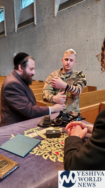 On Monday, Wieder and the Jewish soldier met at the West Point entrance checkpoint, where the exuberant soldier joyously accepted his new pair of tefillin.