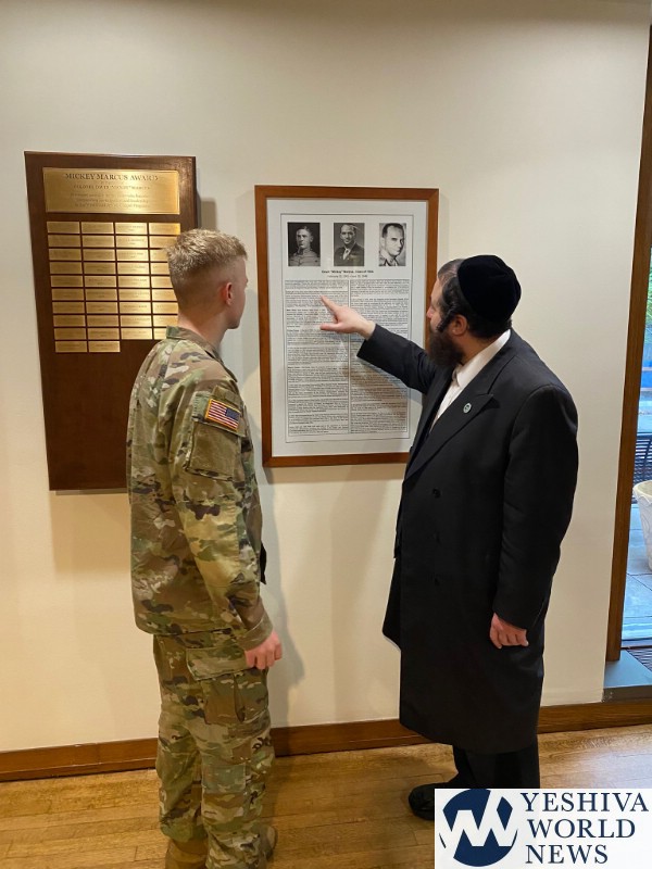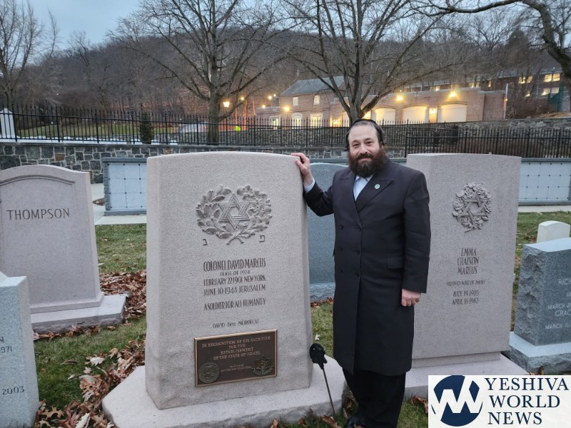 The group of Orthodox Jews then visited the West Point cemetery, where they said a kapitel of Tehillim at several Jewish kevarim, including that of Mickey Marcus, a legend in both American and Israeli military history, and who the Jewish soldier showed them a profile of hanging on the wall in the shul building.