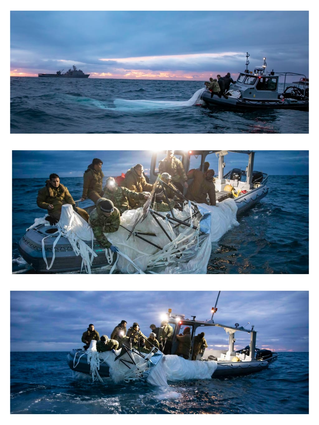 Using underwater drones, warships and inflatable vessels, the Navy is carrying out an extensive operation to gather all of the pieces of the massive Chinese spy balloon a U.S. fighter jet shot down off the coast of South Carolina on Saturday.