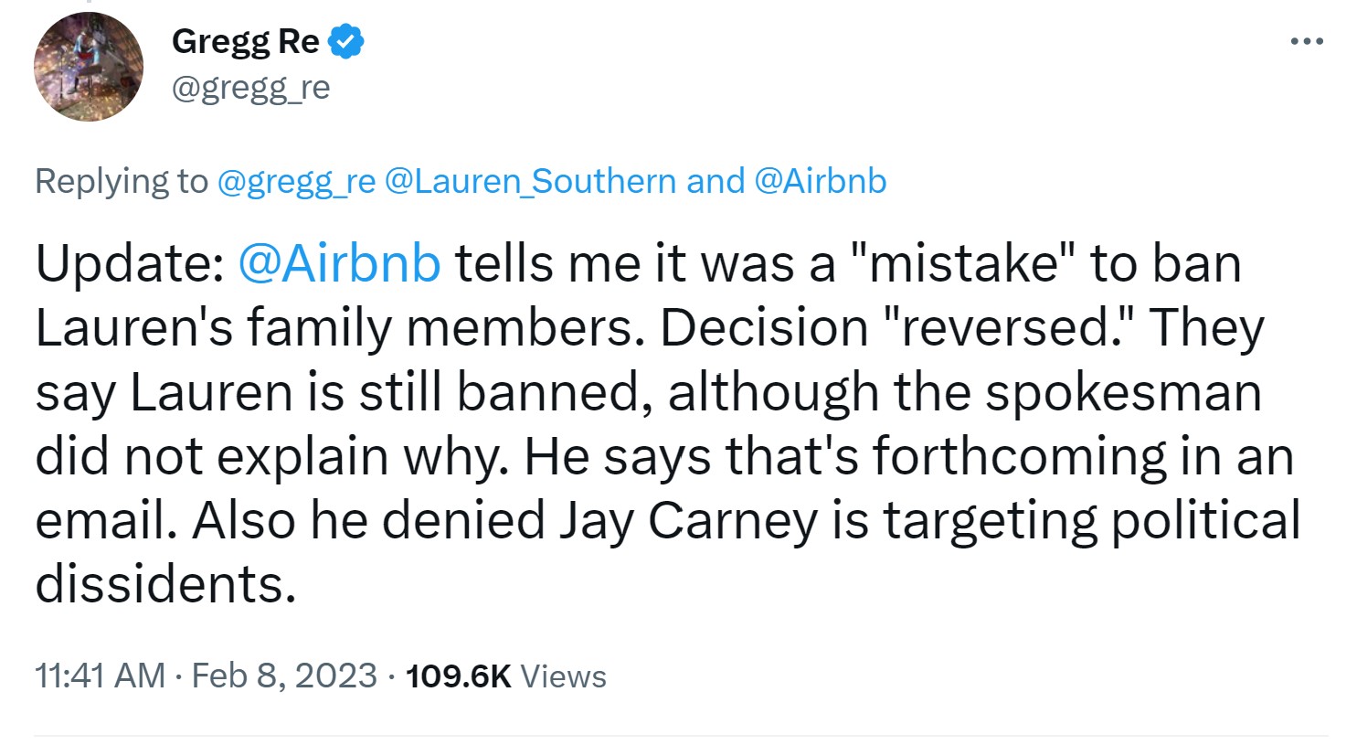 Her tweet quickly went viral and got picked up by a Fox News producer, who demanded Airbnb explain their decision to ban Southern’s parents. Soon after, Airbnb said they had made a mistake and restored Southern’s parents’ account.