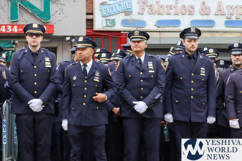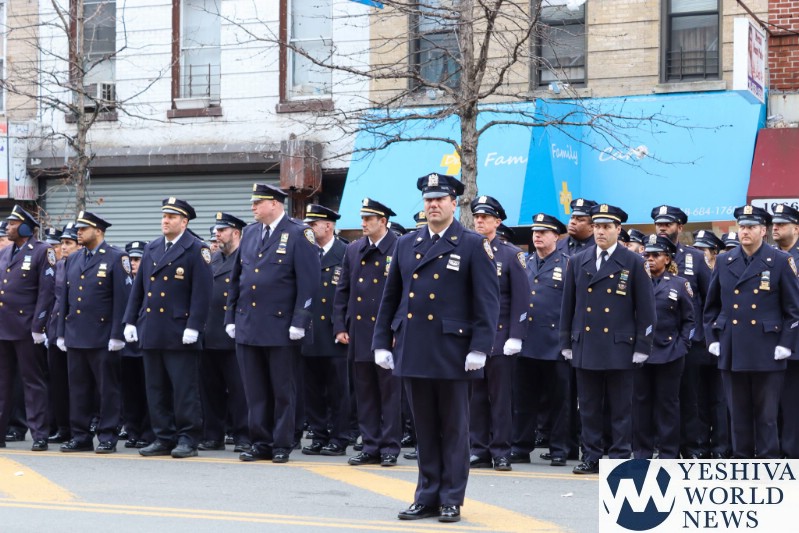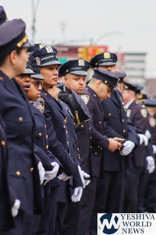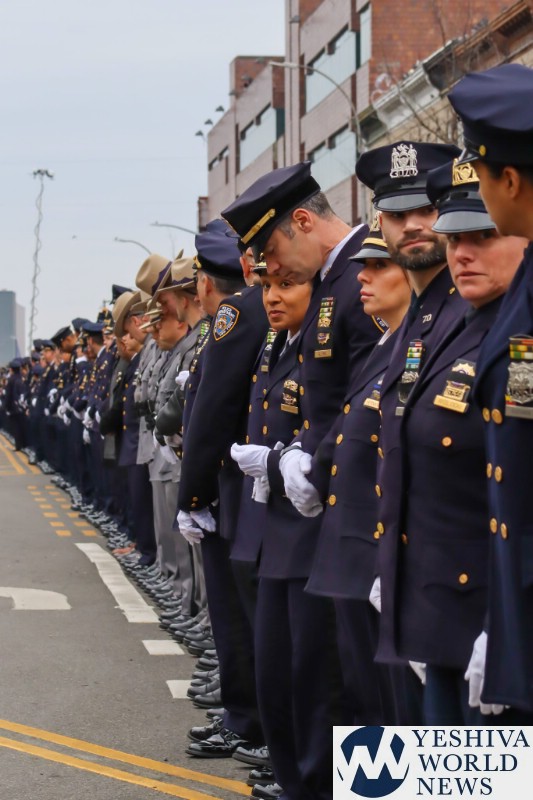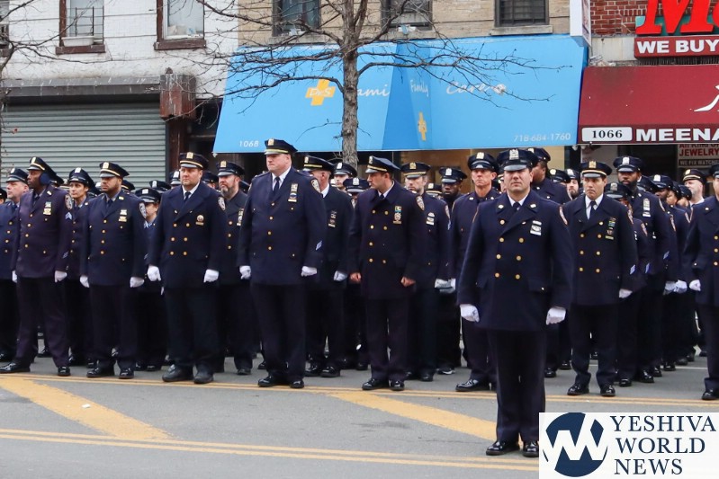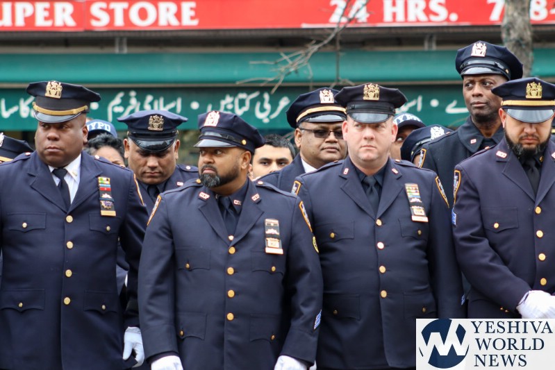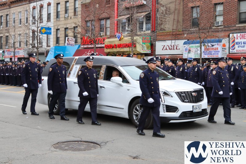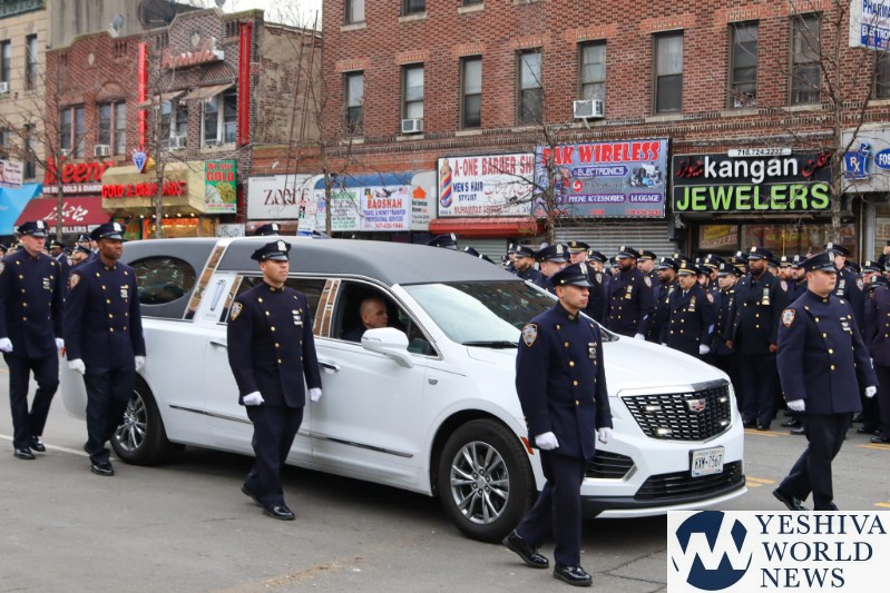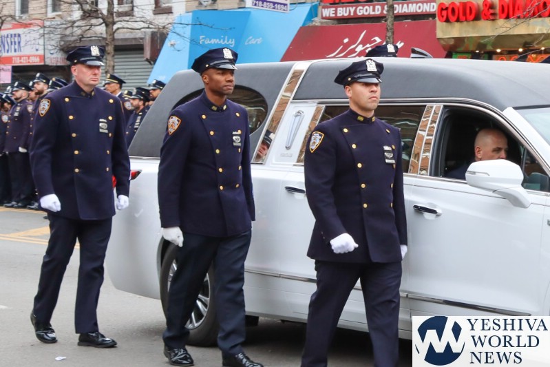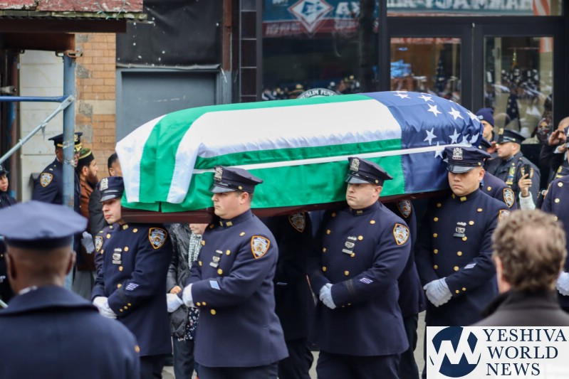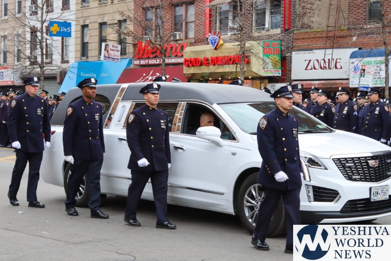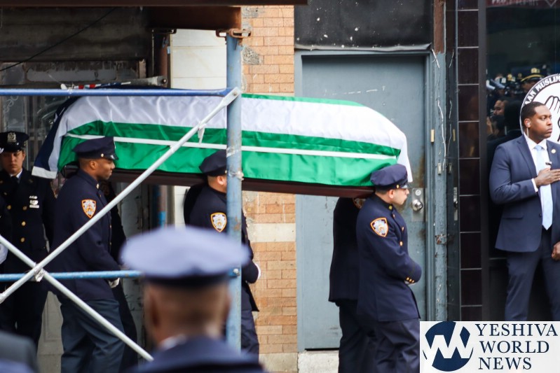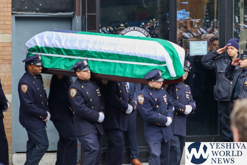 NYPD officers carried his coffin from Al-Rayaan Muslim Funeral Services on Thursday as hundreds of fellow brothers and sisters in blue looked on.