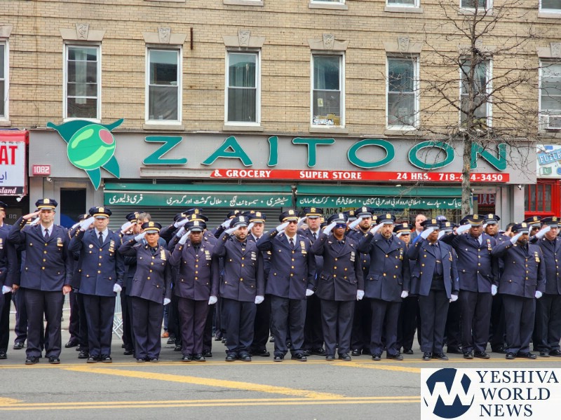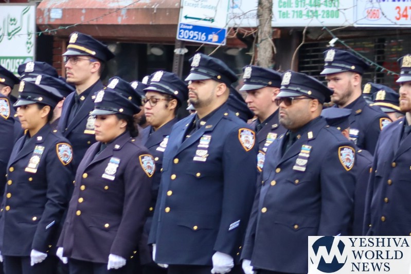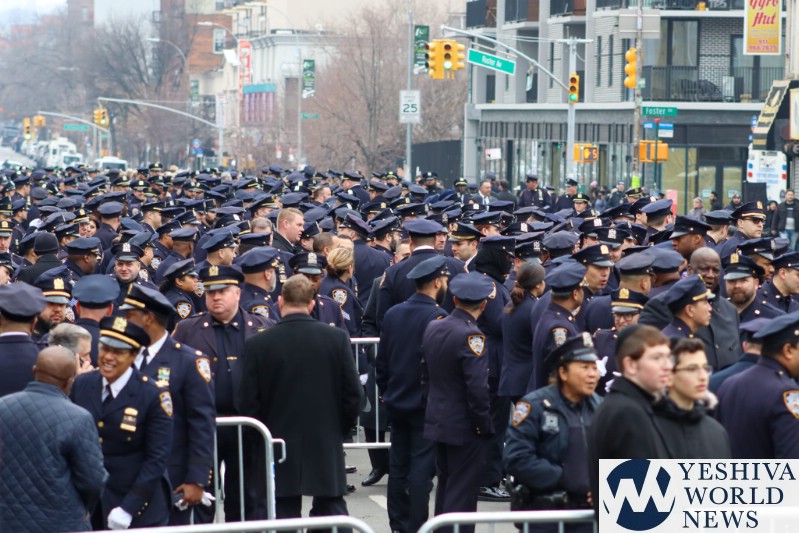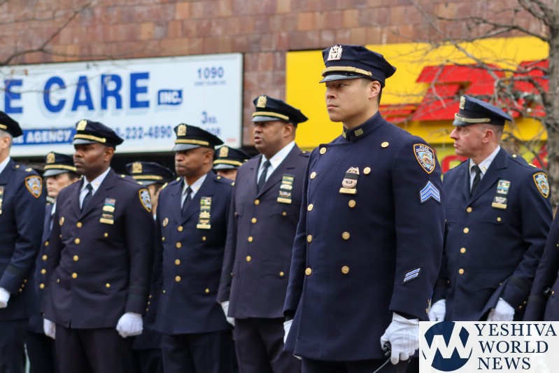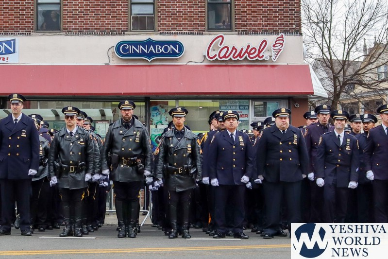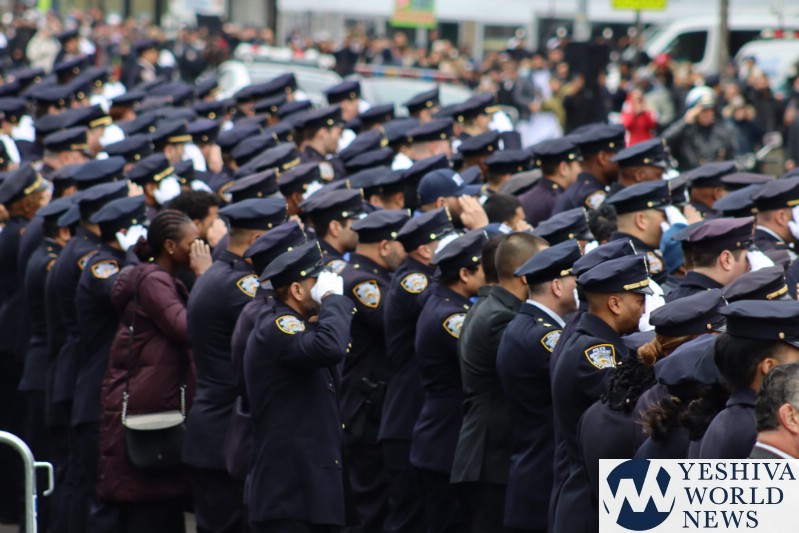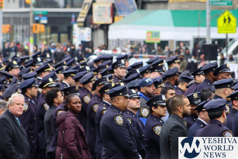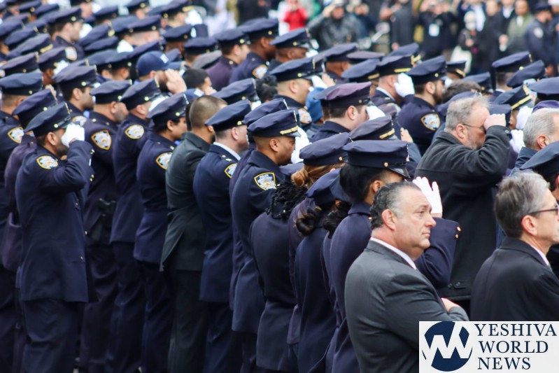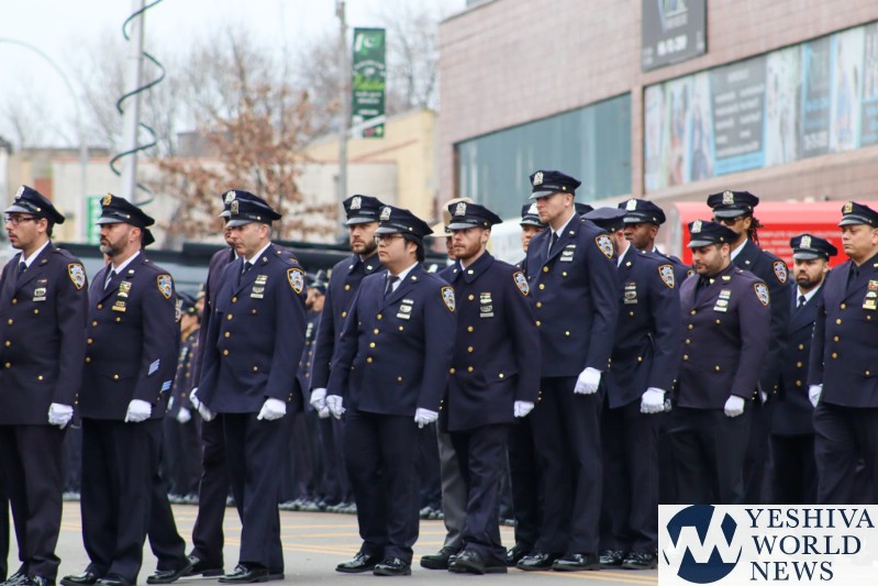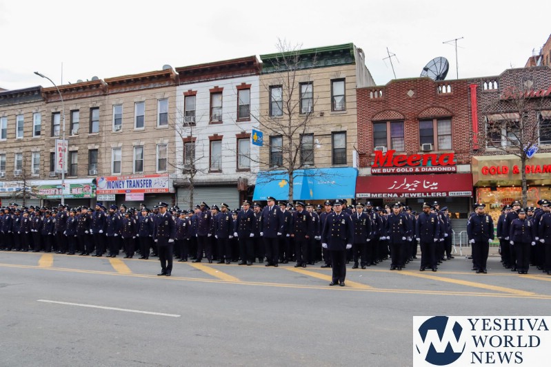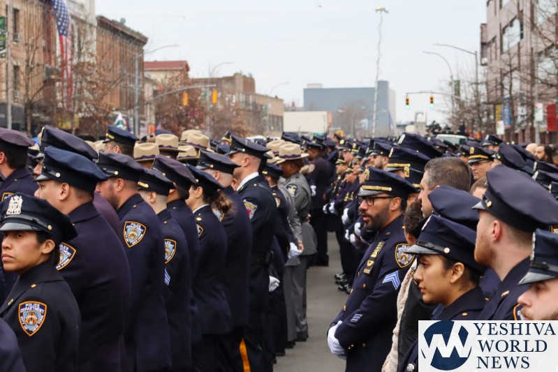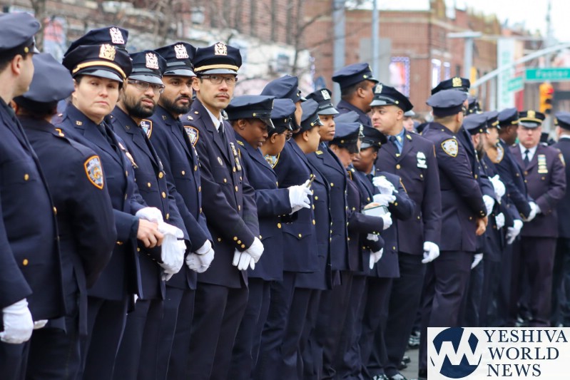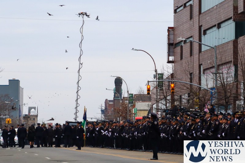 NYPD officers carried his coffin from Al-Rayaan Muslim Funeral Services on Thursday as hundreds of fellow brothers and sisters in blue looked on.