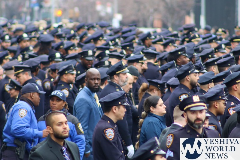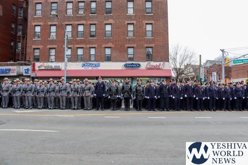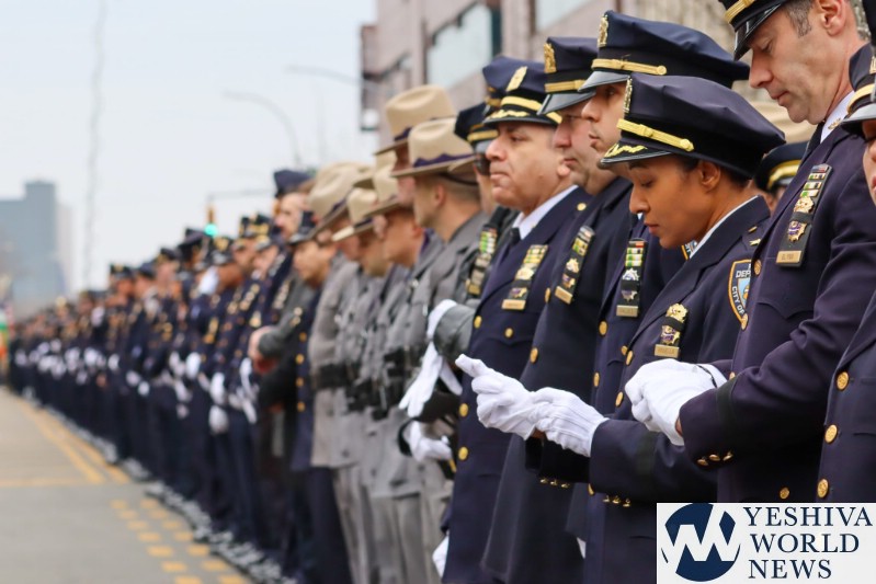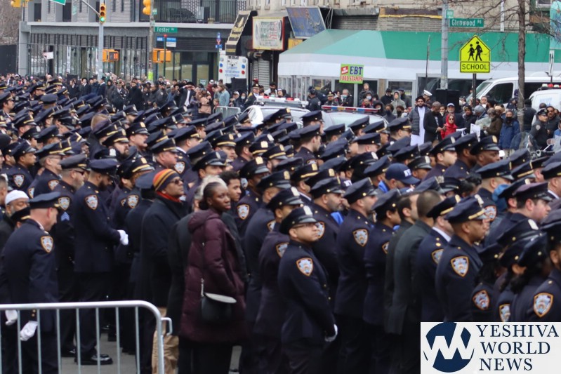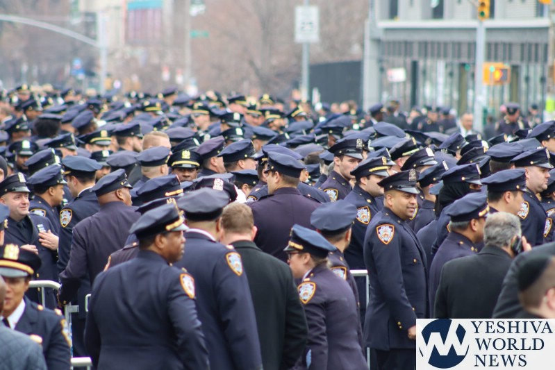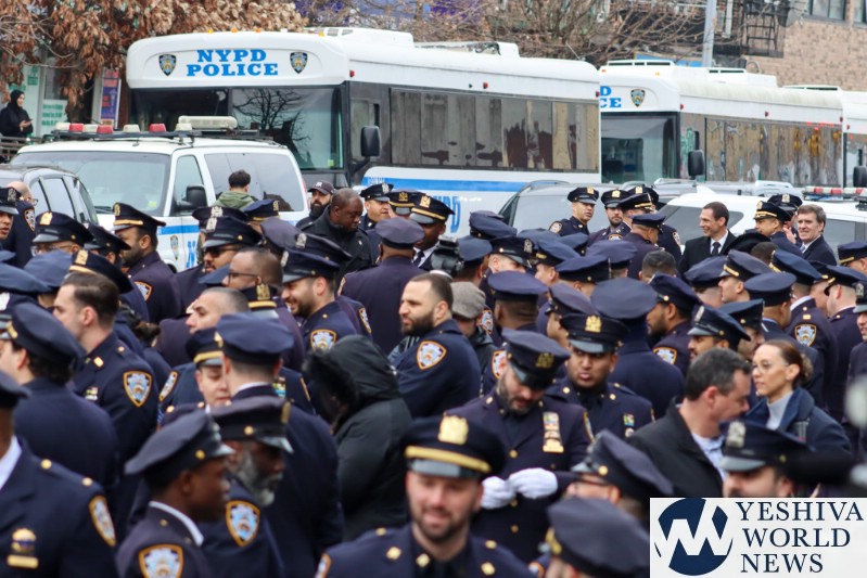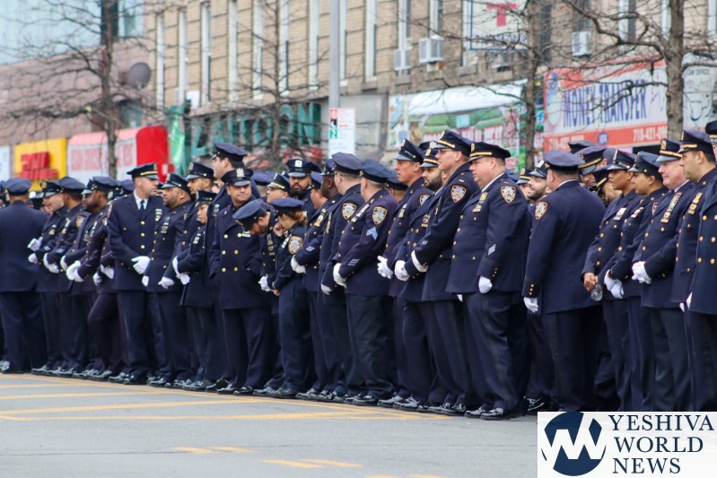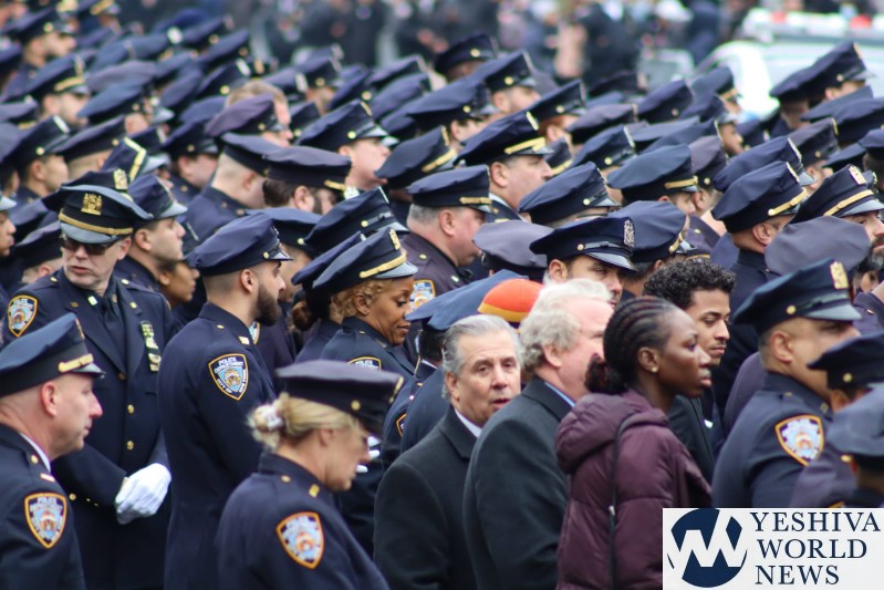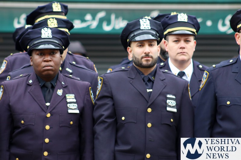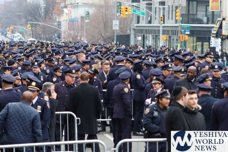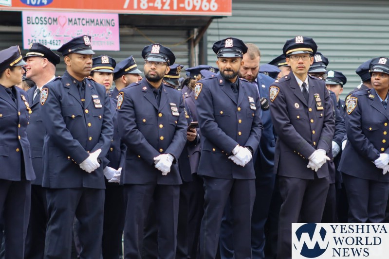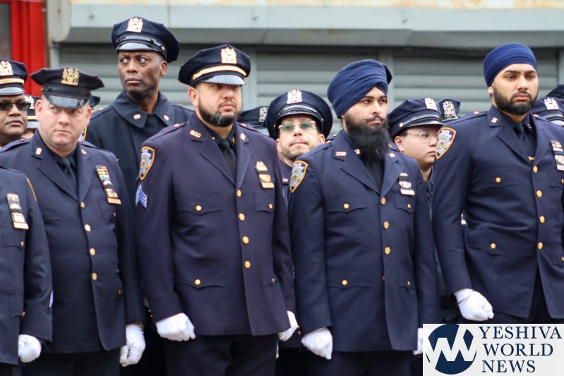 NYPD officers carried his coffin from Al-Rayaan Muslim Funeral Services on Thursday as hundreds of fellow brothers and sisters in blue looked on.