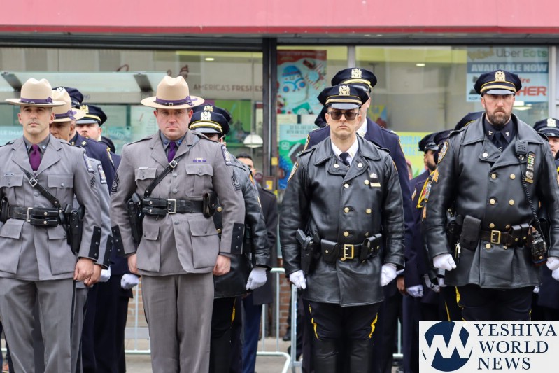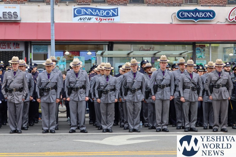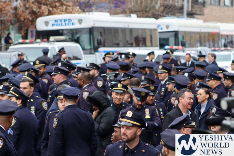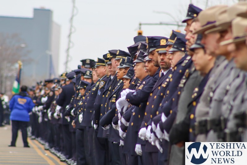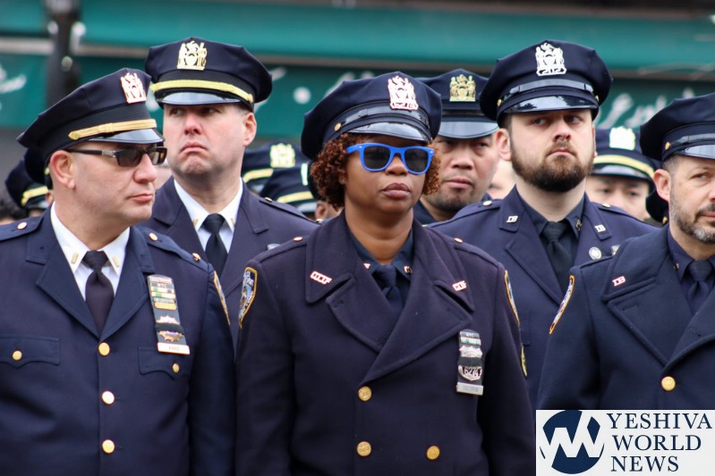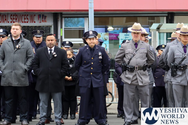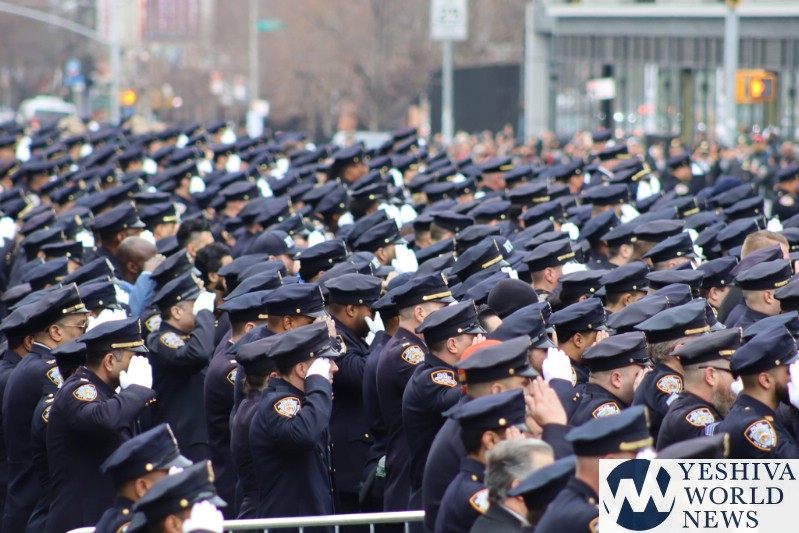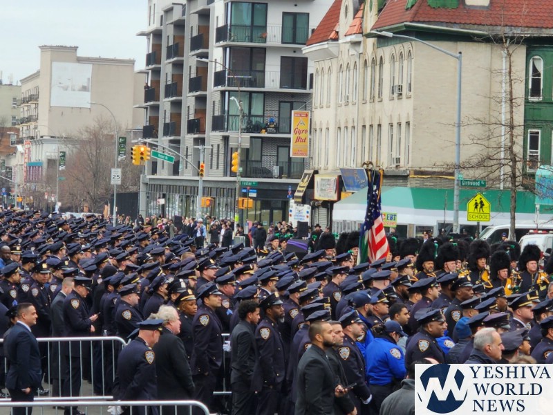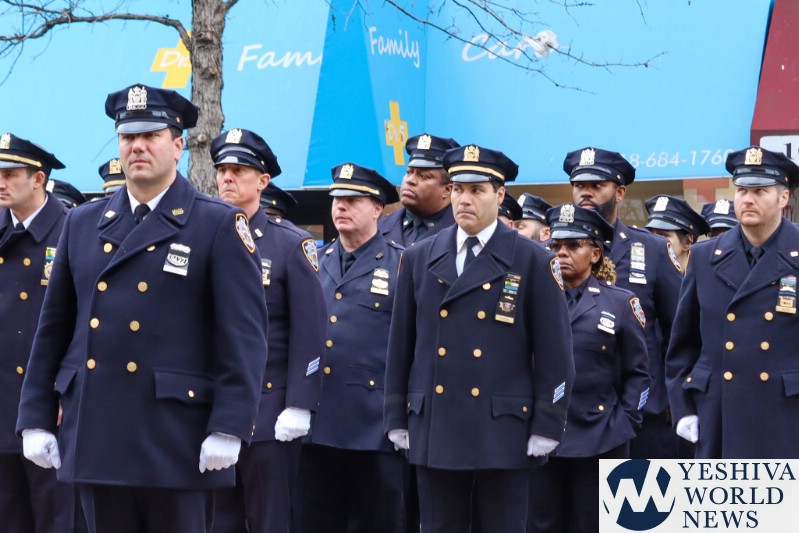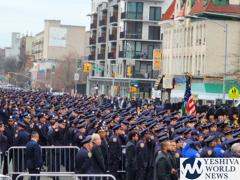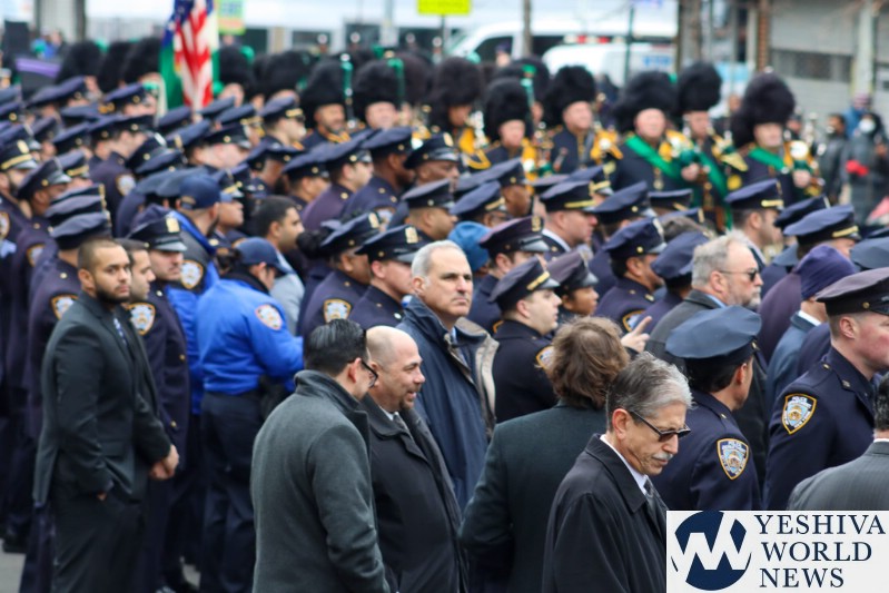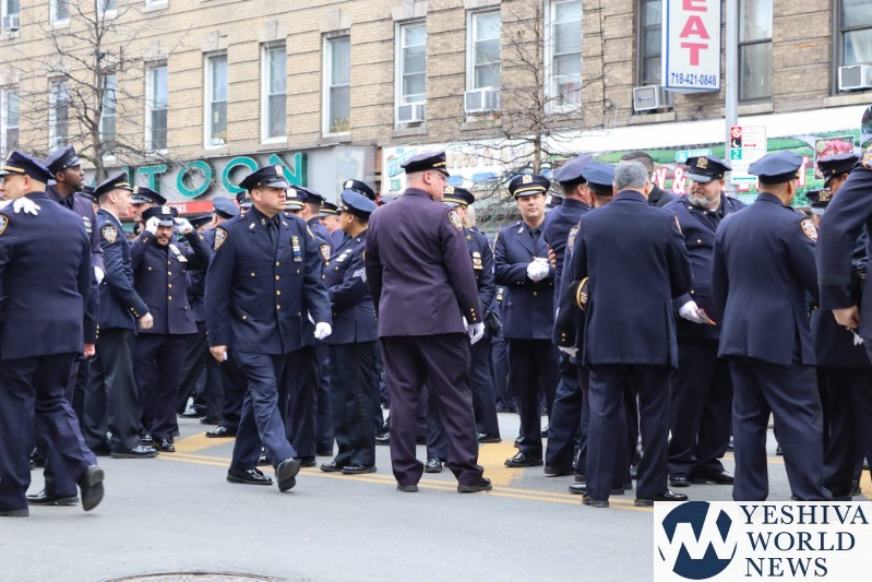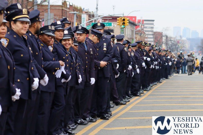 NYPD officers carried his coffin from Al-Rayaan Muslim Funeral Services on Thursday as hundreds of fellow brothers and sisters in blue looked on.