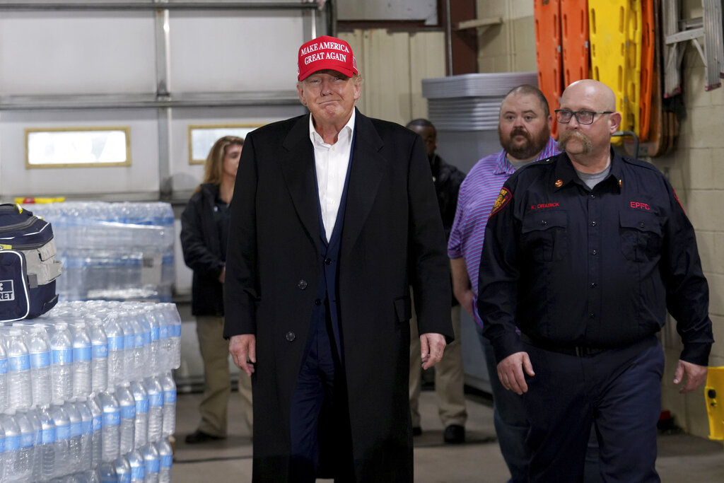 The trip offered Trump, who is running for the White House in 2024, an opportunity to reprise the role he often held as president, when he surveyed disaster damage and met with impacted residents following tragic events. He said he would donate cleaning supplies along with pallets of what he said was Trump-branded bottled water to residents who remain concerned about the quality of their drinking water.