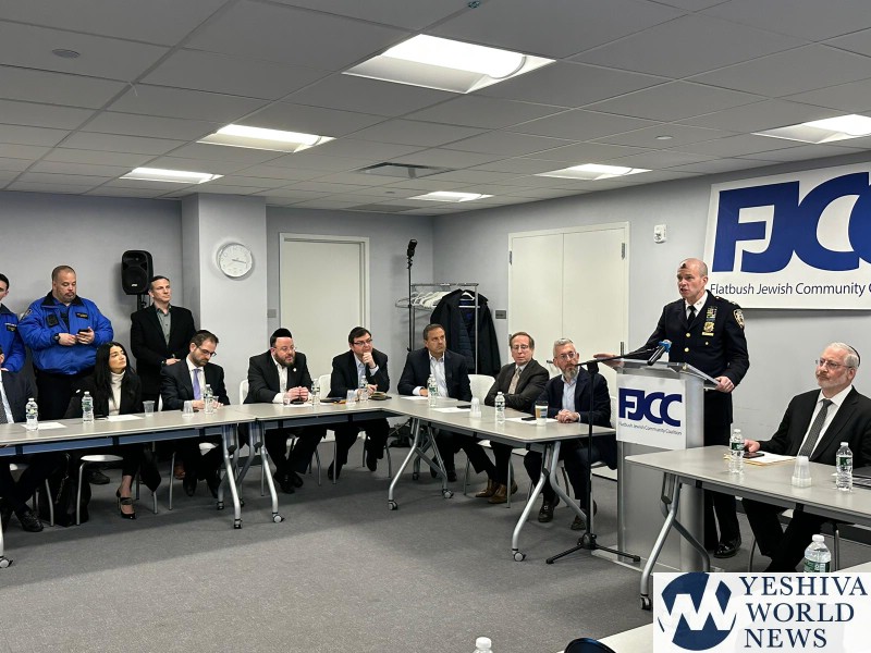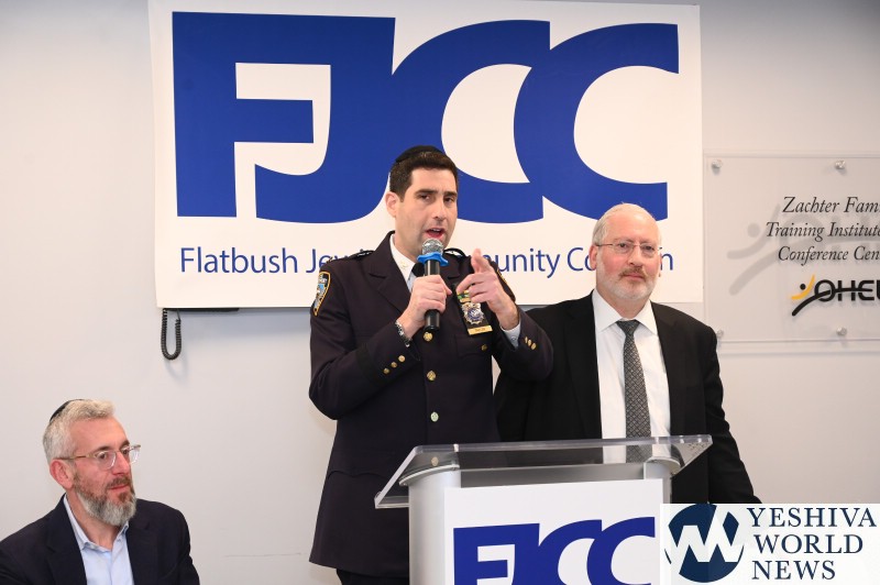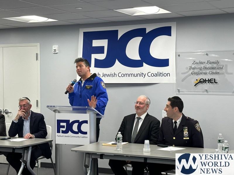 The Flatbush Jewish Community Coalition (FJCC) hosted a leadership meeting yesterday to introduce the NYPD’s new Commanding Officer of Patrol Borough Brooklyn South, Chief Charles McEvoy to community leadership. In light of recent anti semitic attacks and an uptick in crime the meeting was an opportunity for yeshiva, shul and community leaders to discuss their concerns with NYPD brass.