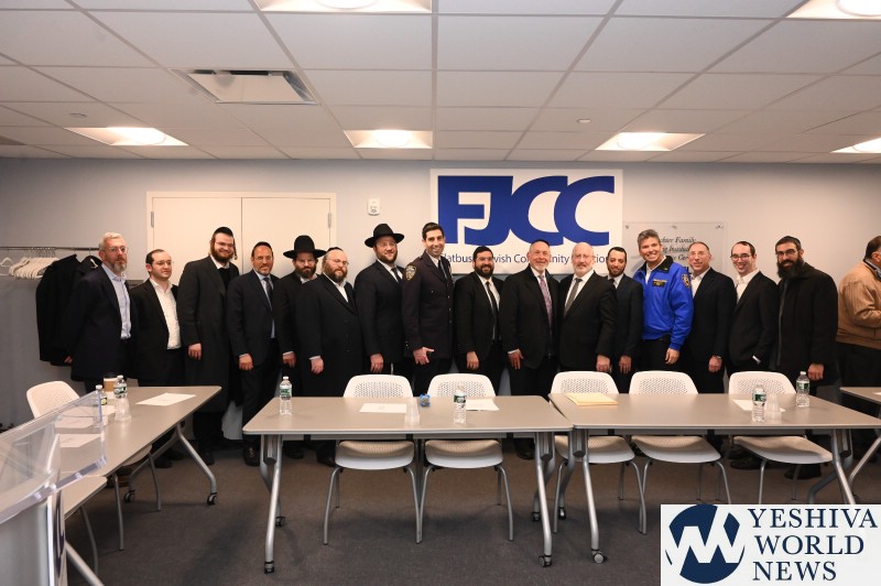 FJCC Chairman Josh Mehlman and executive board member Rafi Treitel chaired the meeting, welcoming the officers and the community leaders, whose attendance indicates their deep commitment to serving the community. The FJCC was established in July 2013 to unite the greater Flatbush Jewish community on communal, civic, and political concerns. The Coalition represents over 200 organizations, shuls, yeshivas, and Bais Yaakov schools.