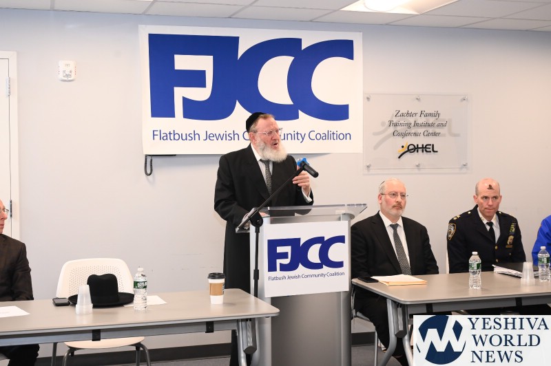 The meeting, held at the Ohel building was attended by more than 50 leaders under the FJCC coalition. The meeting was coordinated by NYPD Brooklyn South Community Affairs Commander Lt. Ira Jablonsky who continuously works alongside the Chief day and night to ensure the community’s safety. Rabbi Moshe Scheinerman, Rov of Khal Bnei Yeshivos gave the opening invocation.