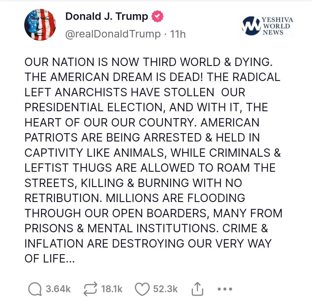 Alvin Bragg ימח שמו וזכרונו needs to be locked up for failing t prosecute summer 2020 looters, as well as for terrorizing a totally innocent person:- President Donald Trump שליט”א.