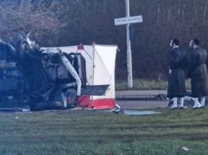 The driver of the minibus, filled with 18 chassidim from London who had traveled to visit the Pshevorsk Rebbe in Antwerp for Shabbos, suffered a medical incident while driving, causing the bus to careen out of control and overturn.