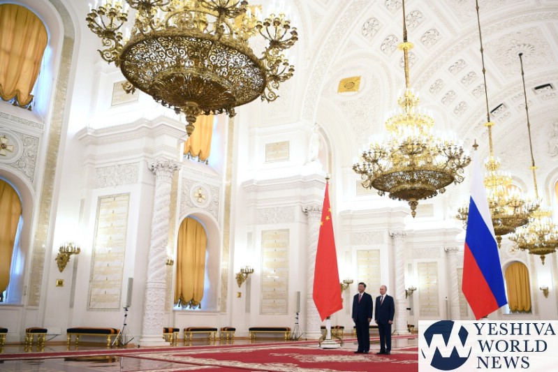 In a tightly choreographed ceremony filled with imperial grandeur, the two leaders entered the huge chandeliered room from opposite sides and shook hands in the middle to the tune of the Russian and Chinese national anthems.
