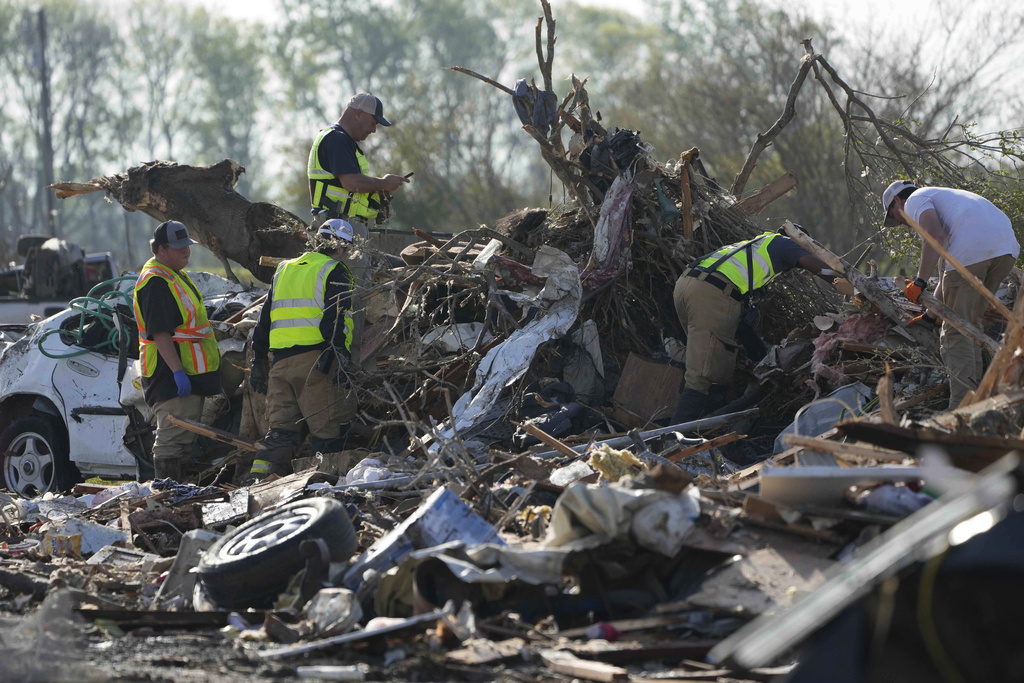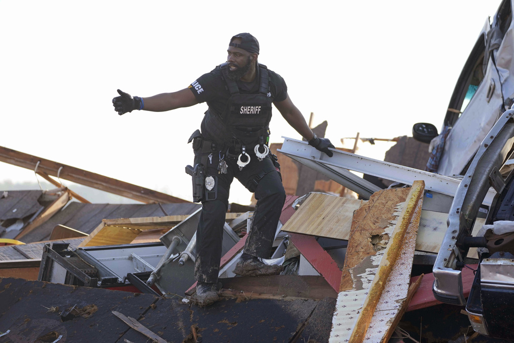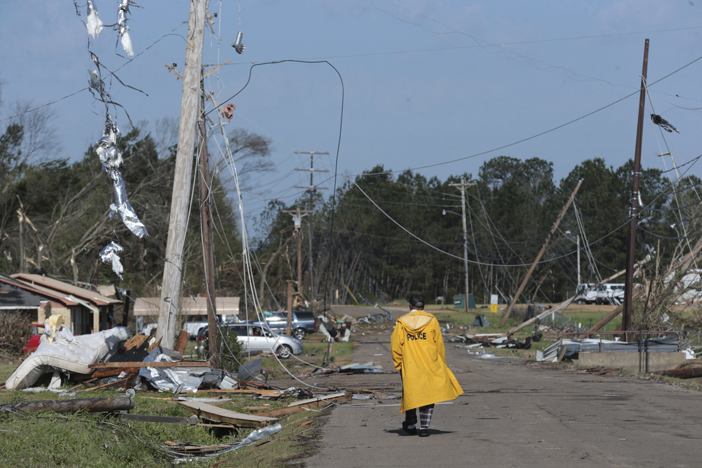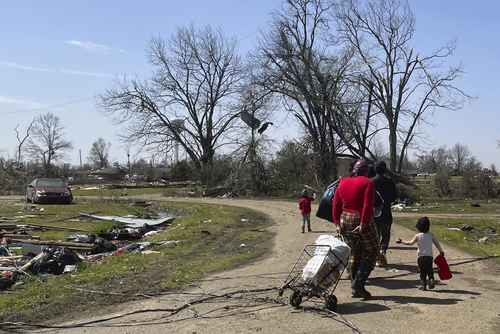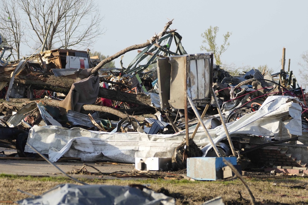 Debris covers a damaged structure in Rolling Fork, Miss,. on Saturday, March 25, 2023. Powerful tornadoes tore through the Deep South on Friday night, killing several people in Mississippi, obliterating dozens of buildings. (AP Photo/Rogelio Solis)A resident looks through the piles of debris, insulation, and home furnishings to see if anything is salvageable at a tornado demolished mobile home park in Rolling Fork, Miss. March 25, 2023. Emergency officials in Mississippi say several people have been killed by tornadoes that tore through the state on Friday night, destroying buildings and knocking out power as severe weather produced hail the size of golf balls moved through several southern states. (AP Photo/Rogelio V. Solis)Emergency rescuers and first responders climb through a tornado demolished mobile home park looking for bodies that might be buried in the piles of debris, insulation, and home furnishings, Saturday morning, March 25, 2023, in Rolling Fork, Miss. Emergency officials in Mississippi say several people have been killed by tornadoes that tore through the state on Friday night, destroying buildings and knocking out power as severe weather produced hail the size of golf balls moved through several southern states. (AP Photo/Rogelio V. Solis)A resident looks through the piles of debris, insulation, and home furnishings to see if anything is salvageable at a mobile home park in Rolling Fork, Miss., Saturday, March 25, 2023. Emergency officials in Mississippi say several people have been killed by tornadoes that tore through the state on Friday night, destroying buildings and knocking out power as severe weather produced hail the size of golf balls moved through several southern states. (AP Photo/Rogelio V. Solis)A resident looks through the piles of debris, insulation, and home furnishings to see if anything is salvageable at a mobile home park in Rolling Fork, Miss., Saturday, March 25, 2023. Emergency officials in Mississippi say several people have been killed by tornadoes that tore through the state on Friday night, destroying buildings and knocking out power as severe weather produced hail the size of golf balls moved through several southern states. (AP Photo/Rogelio V. Solis)A sheriff’s deputy gives the all clear signal after climbing onto a piled up vehicle to search for survivors or the deceased at Chuck’s Dairy Bar in Rolling Fork, Miss., Saturday, March 25, 2023. Emergency officials in Mississippi say several people have been killed by tornadoes that tore through the state on Friday night, destroying buildings and knocking out power as severe weather produced hail the size of golf balls moved through several southern states. (AP Photo/Rogelio V. Solis)A sheriff’s deputy climbs onto a pile of wind-tossed vehicles to search for survivors or the deceased at Chuck’s Dairy Bar in Rolling Fork, Miss., Saturday, March 25, 2023. Emergency officials in Mississippi say several people have been killed by tornadoes that tore through the state on Friday night, destroying buildings and knocking out power as severe weather produced hail the size of golf balls moved through several southern states. (AP Photo/Rogelio V. Solis)A pair of residents walk through the remains of their tornado demolished mobile home park, looking through the piles of debris, insulation, and home furnishings to see if anything is salvageable in Rolling Fork, Miss., Saturday, March 25, 2023. Emergency officials in Mississippi say several people have been killed by tornadoes that tore through the state on Friday night, destroying buildings and knocking out power as severe weather produced hail the size of golf balls moved through several southern states. (AP Photo/Rogelio V. Solis)Piles of debris, insulation, damaged vehicles and home furnishings are all that remain this neighborhood in Rolling Fork, Miss., Saturday morning, March 25, 2023. Emergency officials in Mississippi say several people have been killed by tornadoes that tore through the state on Friday night, destroying buildings and knocking out power as severe weather produced hail the size of golf balls moved through several southern states. (AP Photo/Rogelio V. Solis)Wind-tossed vehicles, are piled onto another in Rolling Fork, Miss., Saturday, March 25, 2023, the day after a series of storms produced tornadoes moved through the area. Emergency officials in Mississippi say several people have been killed by tornadoes that tore through the state on Friday night, destroying buildings and knocking out power as severe weather produced hail the size of golf balls moved through several southern states. (AP Photo/Rogelio V. Solis)Wonder Bolden cradles her year-old granddaughter Journey Bolden as she surveys the remains of her mother’s tornado demolished mobile home in Rolling Fork, Miss., Saturday March 25, 2023. Emergency officials in Mississippi say several people have been killed by tornadoes that tore through the state on Friday night, destroying buildings and knocking out power as severe weather produced hail the size of golf balls moved through several southern states. (AP Photo/Rogelio V. Solis)A pickup truck rests on top of a restaurant cooler at Chuck’s Dairy Cafe in Rolling Fork, Miss., Saturday, March 25, 2023. Emergency officials in Mississippi say several people have been killed by tornadoes that tore through the state on Friday night, destroying buildings and knocking out power as severe weather produced hail the size of golf balls moved through several southern states. (AP Photo/Rogelio V. Solis)Noel Crook looks through damage at his home in Silver City, Miss., on Saturday, March 25, 2023. The roof had torn off Crook’s home, where he lives there with his wife. Emergency officials in Mississippi say several people have been killed by tornadoes that tore through the state on Friday night, destroying buildings and knocking out power as severe weather produced hail the size of golf balls moved through several southern states.(A