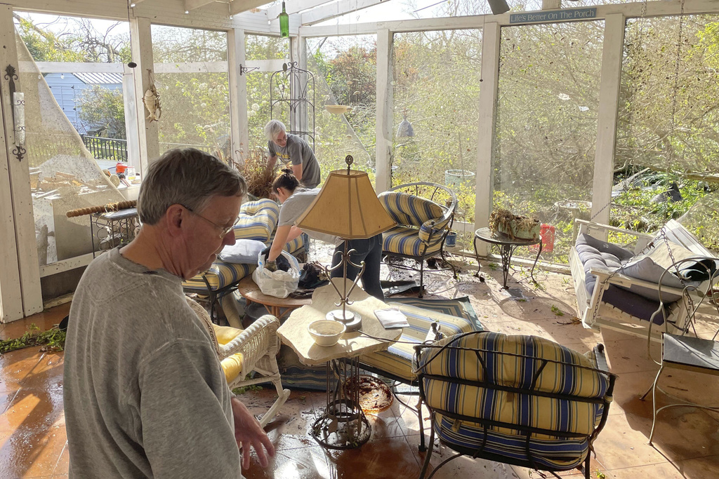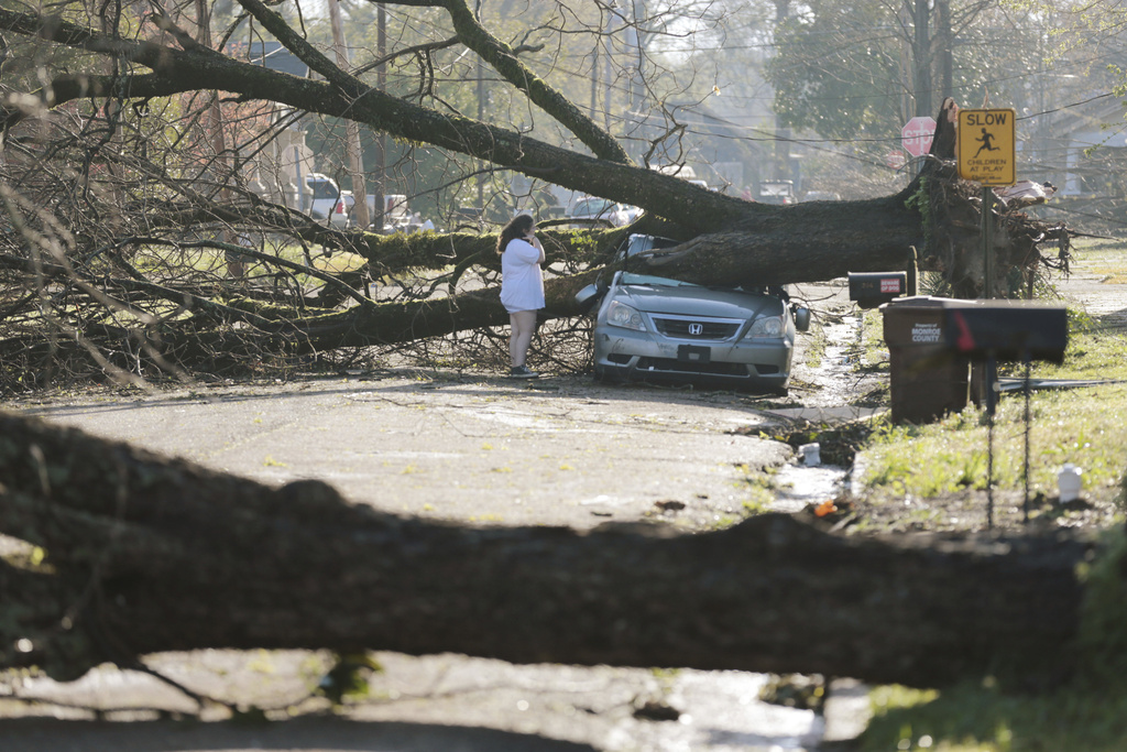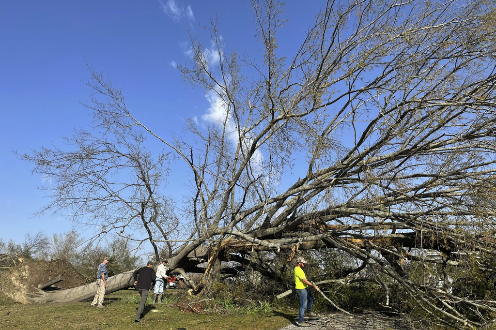 Throughout Saturday, survivors walked around dazed and in shock as they broke through debris and fallen trees with chain saws, searching for survivors. Power lines were pinned under decades-old oaks, their roots torn from the ground.