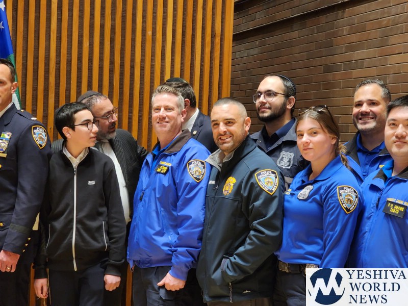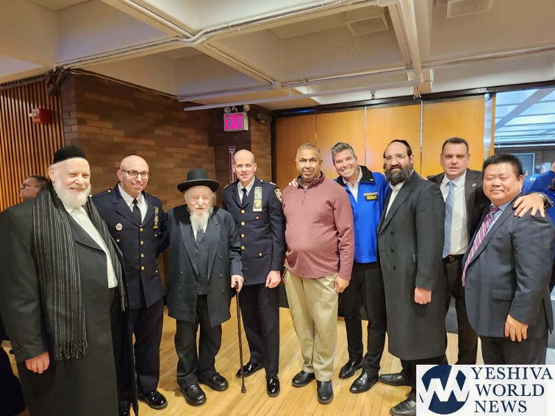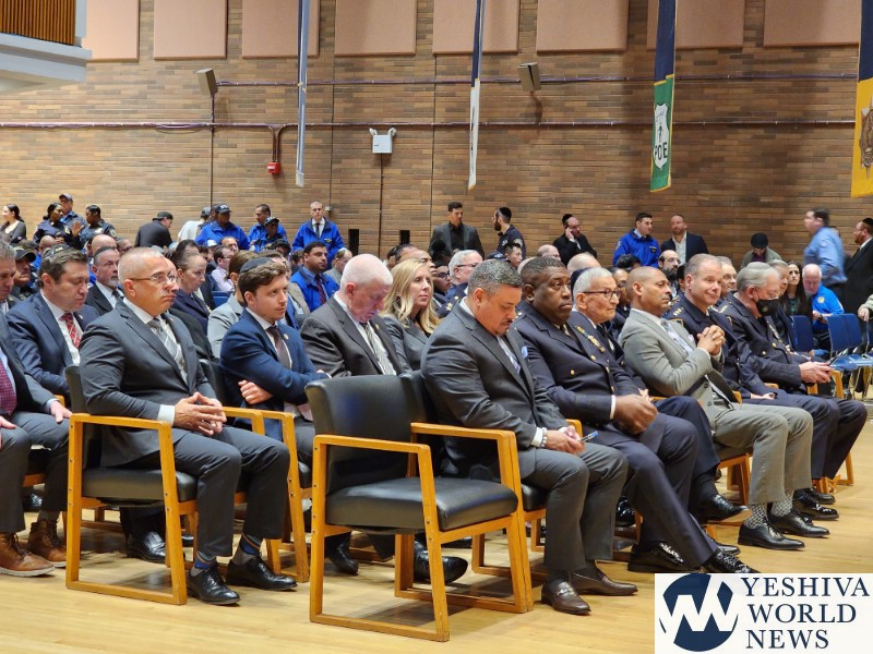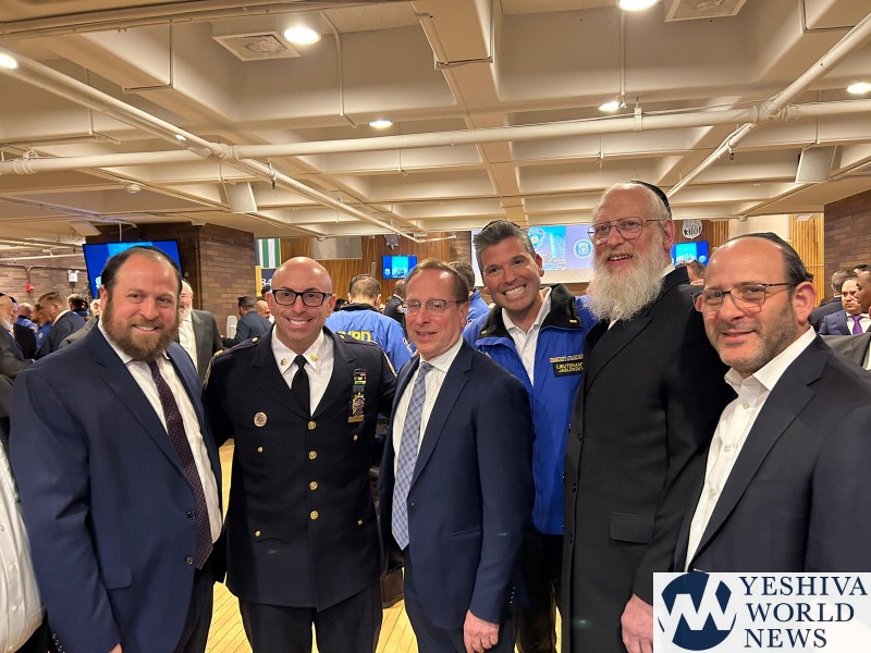 Central Hatzalah CEO Rabbi Yechiel Kalish, Flatbush Shomrim Executive Coordinator Bob Moskovitz, Boro Park Shomrim Coordinator Motty Katz and an array of other Shomrim and Hatzalah leaders were in attendance. NYC Council Members Kalman Yeger and Ari Kagan attended along with NYPD Clergy Liaison Yehuda Eckstein, NYPD Clergy Liaison David Heskiel, Law Enforcement Chaplain Rabbi Abe Friedman, Rabbi Mendy Mirocznik, Honorary Police Surgeon Rafi Lilker, FJCC Chairman Josh Mehlman and Yankie Meyer’s son Shlomo. A special memorial page dedication was highlighted on the screens for Rabbi Yankie Meyer and retired Deputy Chief Chuck Scholl.