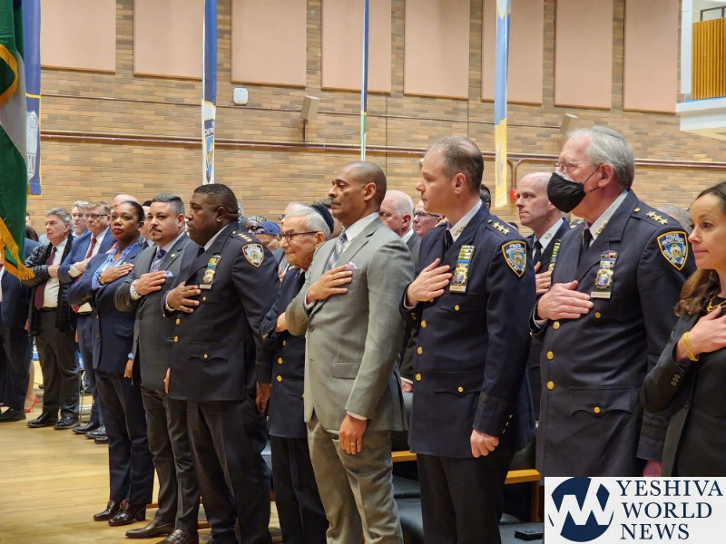 The NYPD Honor Guard presented the colors after which International Jewish Music Recording Artist Yoni Z beautifully sang the National Anthem for the crowd of over 400 people.