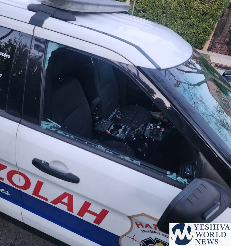A marked Los Angeles Hatzolah vehicle had its windows smashed on Tuesday morning. The vehicle3 was parked at Orange and 1st in Hancock Park. It did not appear to have anything stolen.