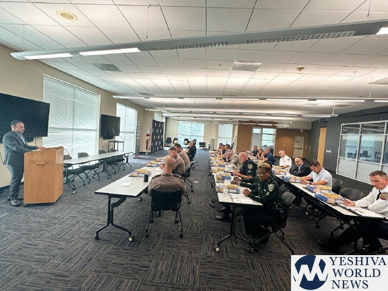 The meeting was arranged by State Police Chaplain Mark Rosenberg and was attended by top brass from the Florida Highway Patrol, Florida Department of Law Enforcement, Disney World Security, Orange, Osceola and Polk County Sheriff’s offices, Orlando Police Department, Fire Rescue agencies from Orange, Osceola and Polk Counties, as well as the city of Orlando. Representatives of the Jewish community included Dovie Katz of Chesed Shel Emes of Florida as well as Dr. Yossi Schenker MD, Medical Director and Chief Medical Officer Hatzalah Orlando, Joshua Hartman, ALS Supervisor Chevra Hatzalah, and Hatzalah Orlando Supervisor Dovid Goldwasser