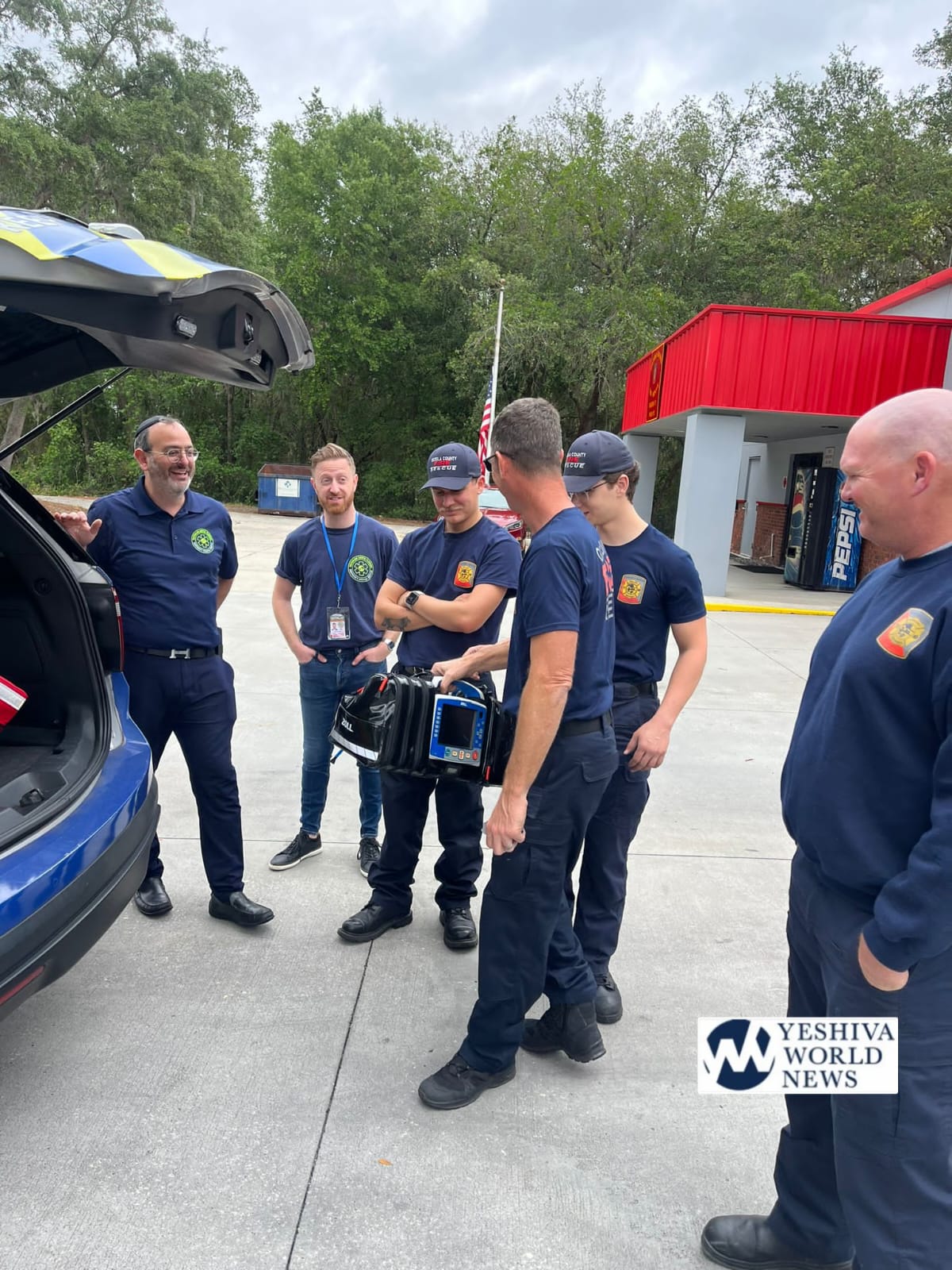 After leaving one of the Fire Stations, the Hatzalah members encountered an Osceola County Ambulance broken down on the side of the highway, members stopped and gave them snacks and drinks, and waited with them until a repair truck arrived. Just another in a series of collaborative opportunities the growing Orlando Jewish community will benefit from moving forward.