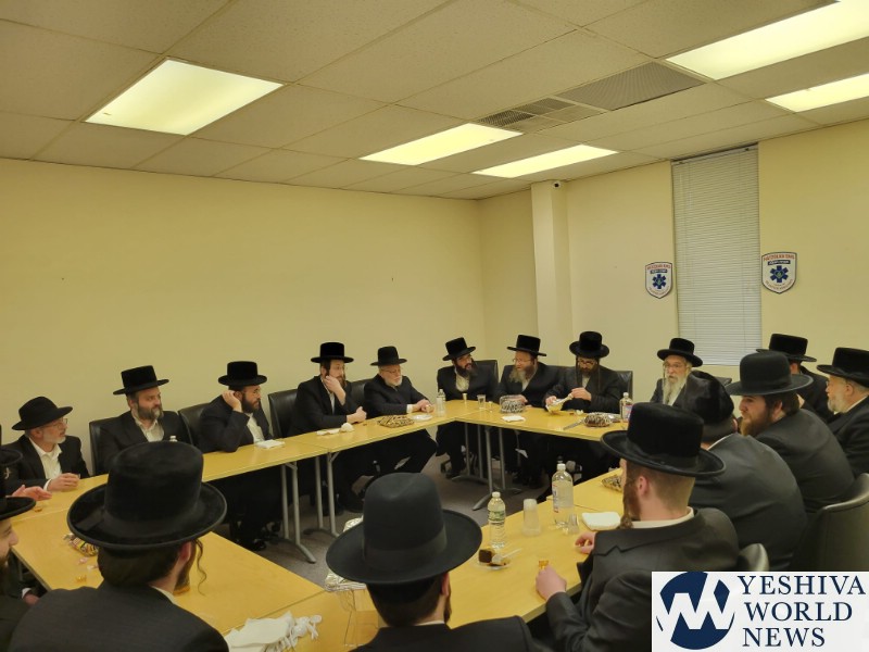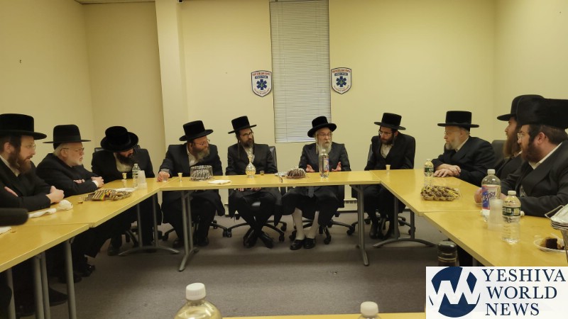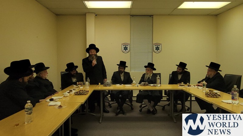 A “Lechayim Tish” in celebration of the new ambulance going into service was held in the presence of the Kossoner Rebbe, as well as other local Rabbonim, and was attended by the leadership of Linden Hatzolah.