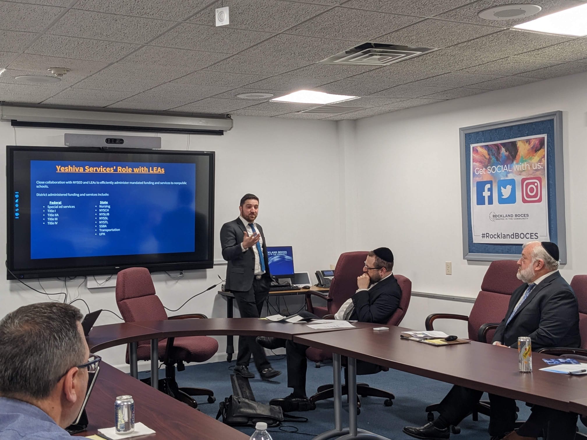 Recently, Agudath Israel’s Rockland Regional office did just that at a meeting with the Rockland BOCES: The Boards of Cooperative Educational Services for the eight Rockland County school districts. Rabbi Shragi Greenbaum, director of Agudah’s Rockland regional office, Rabbi Yehoshua Pinkus, director of Yeshiva Services, and Ami Bazov, Esq., associate director of Yeshiva Services, explained to the board the history of Agudath Israel and its role in Rockland County and elaborated on the benefits of the districts’ collaboration with Agudath Israel.