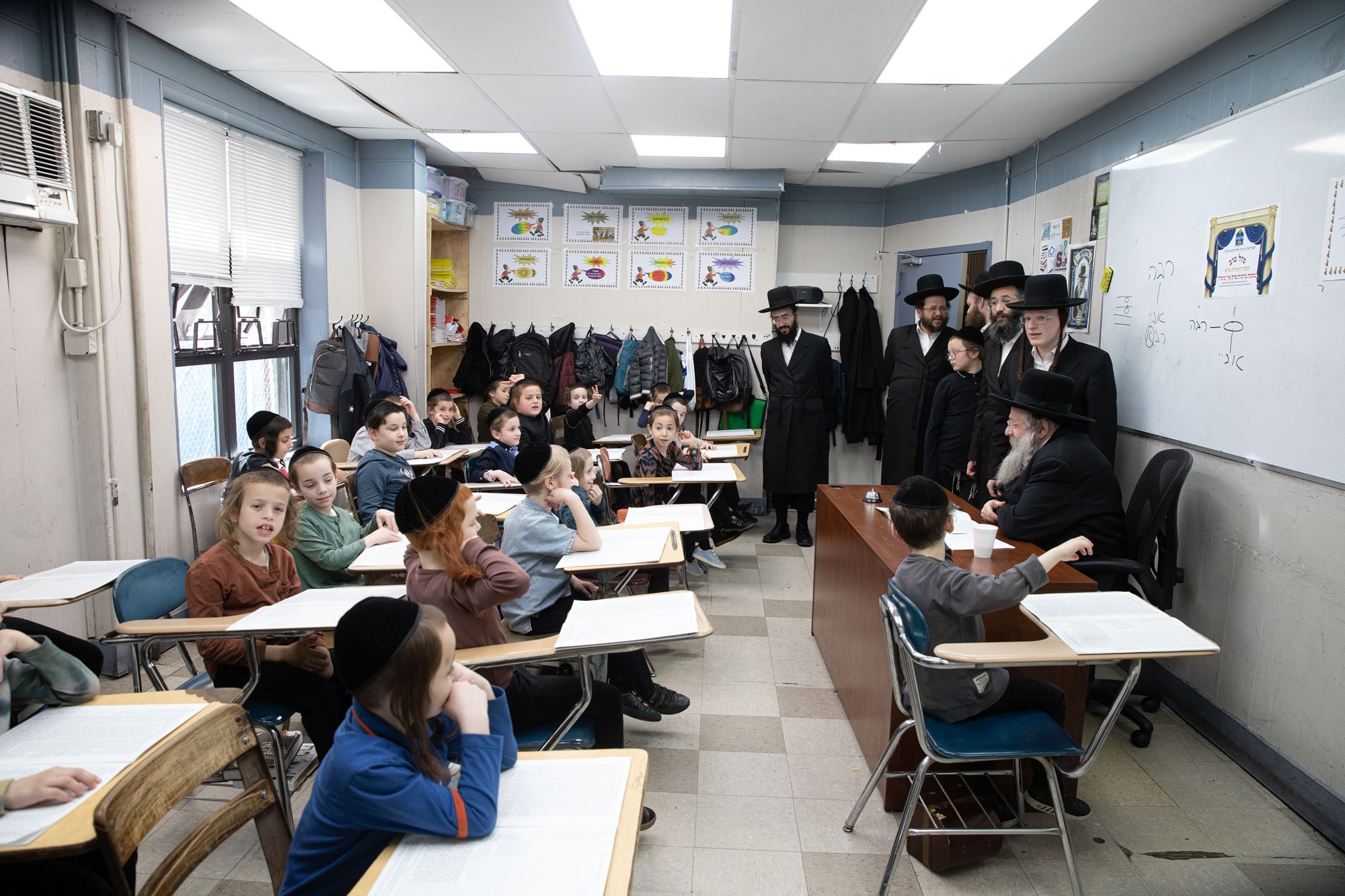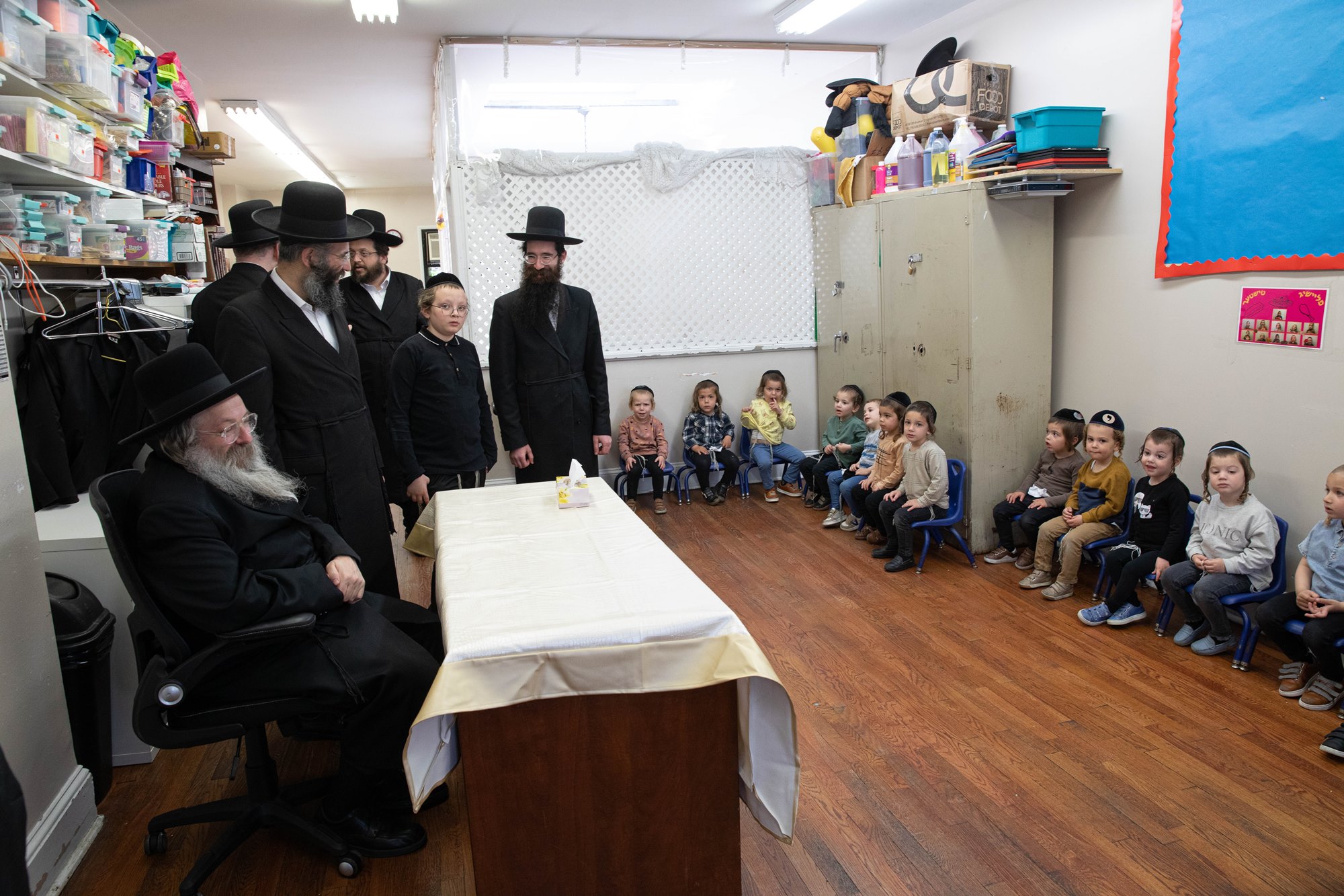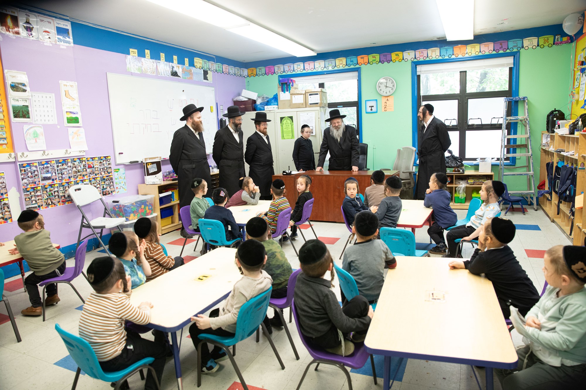On the following day, he toured yeshiva Imrei Emes, and farhered the children there. From there, he went to tour the nearly-completed building for the cheder.