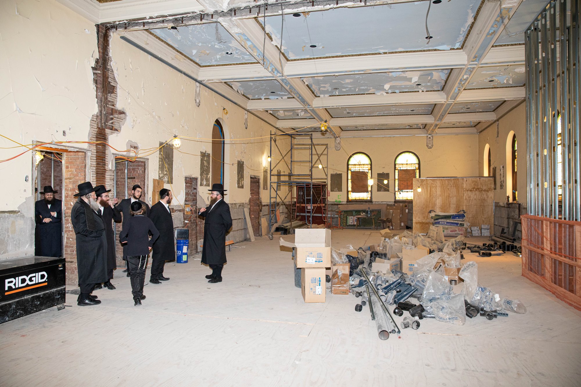 While in Skver, Rav Nechemiah was treated to a special tour of the new shul being built there.