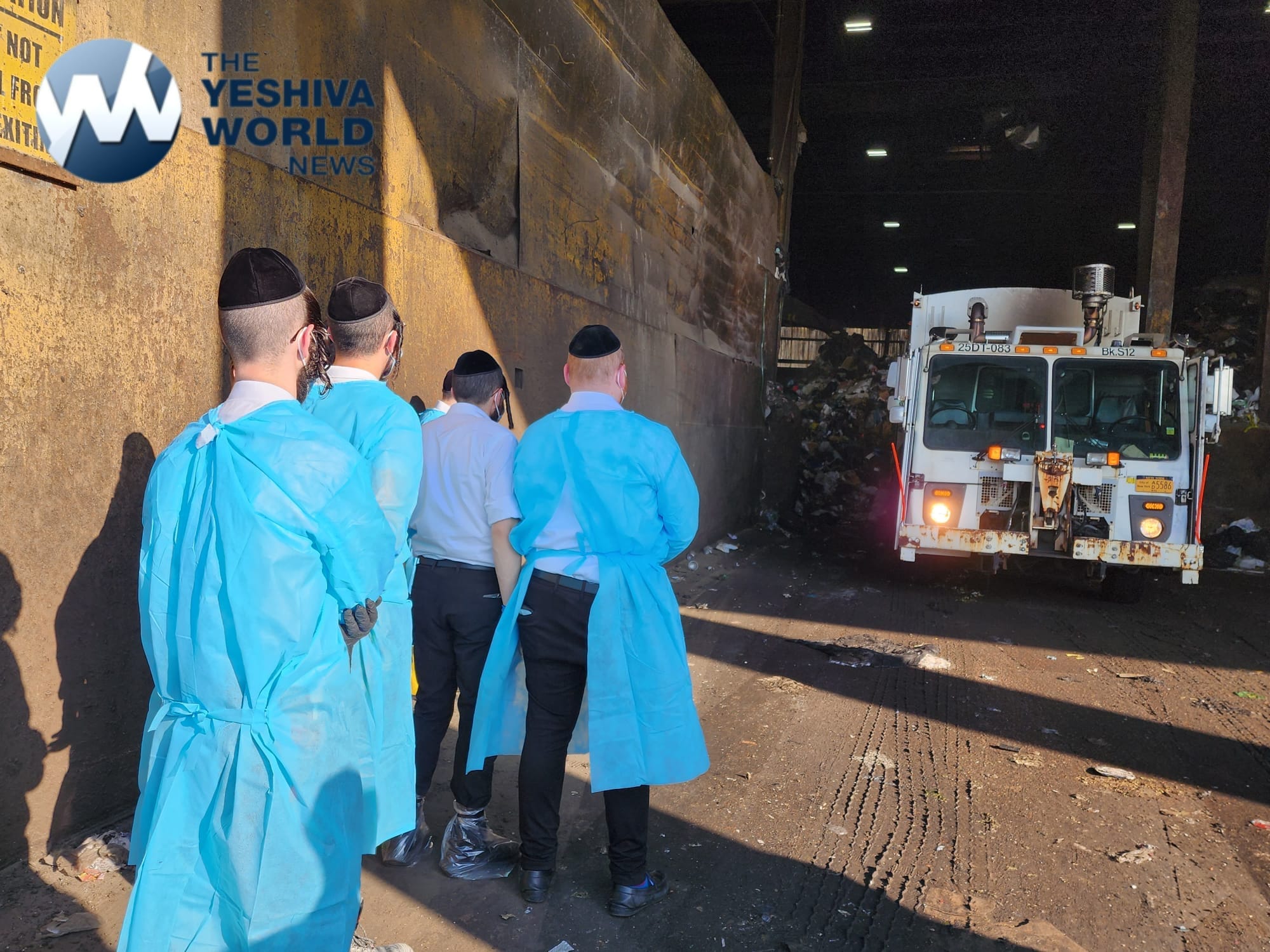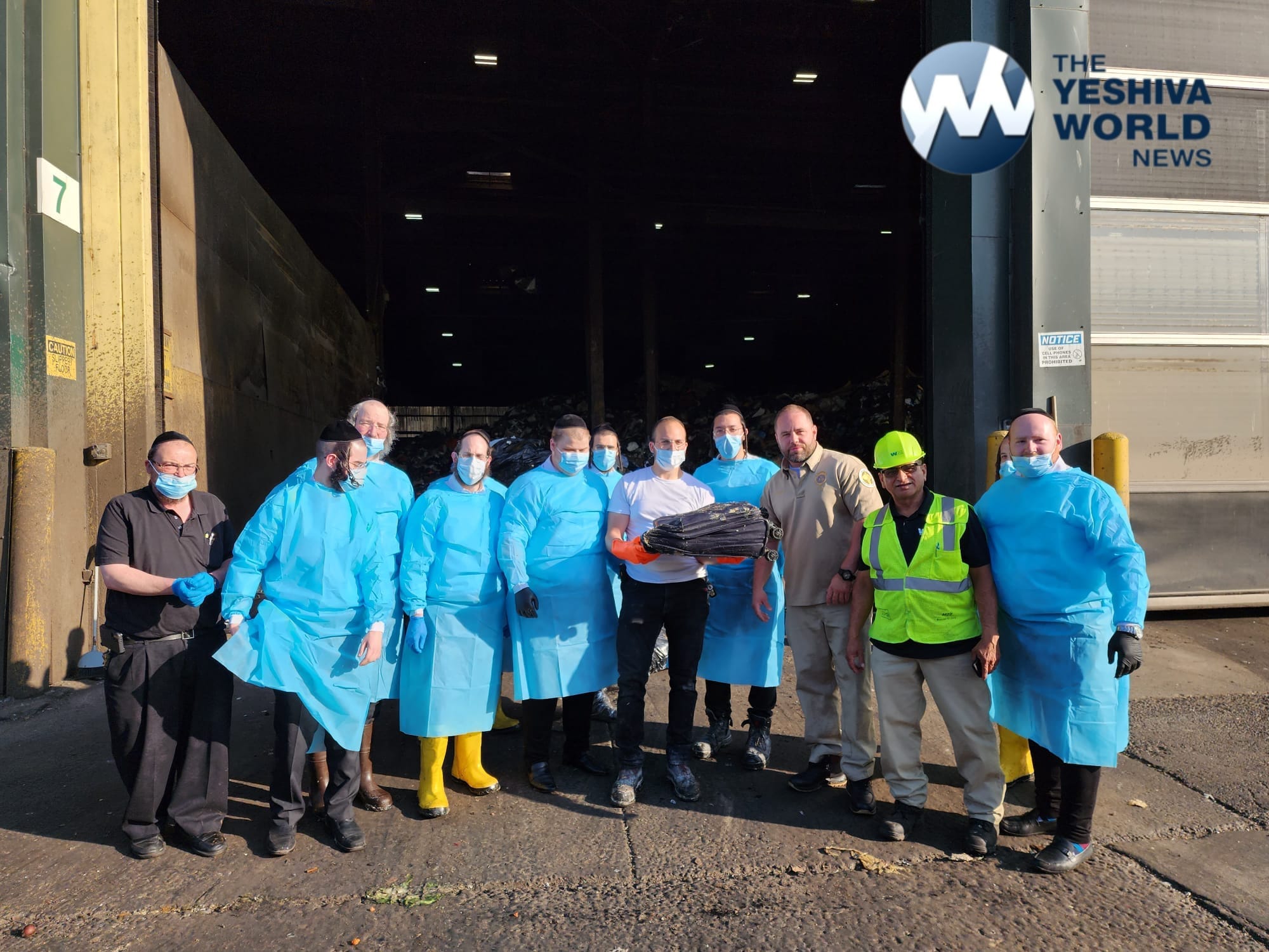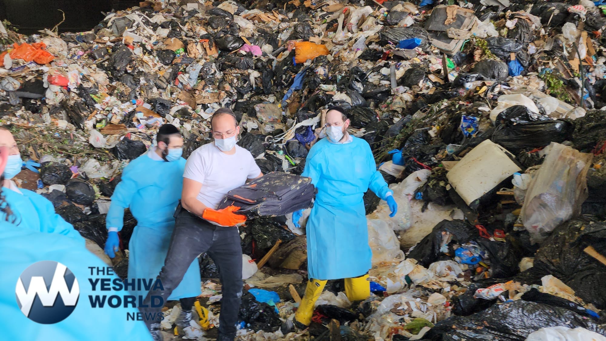 A group of volunteers from Chaveirim and Shomrim of Boro Park returned a suitcase containing a man’s tallis and tefillin to its rightful owner after sifting through piles of garbage at a waste management facility.