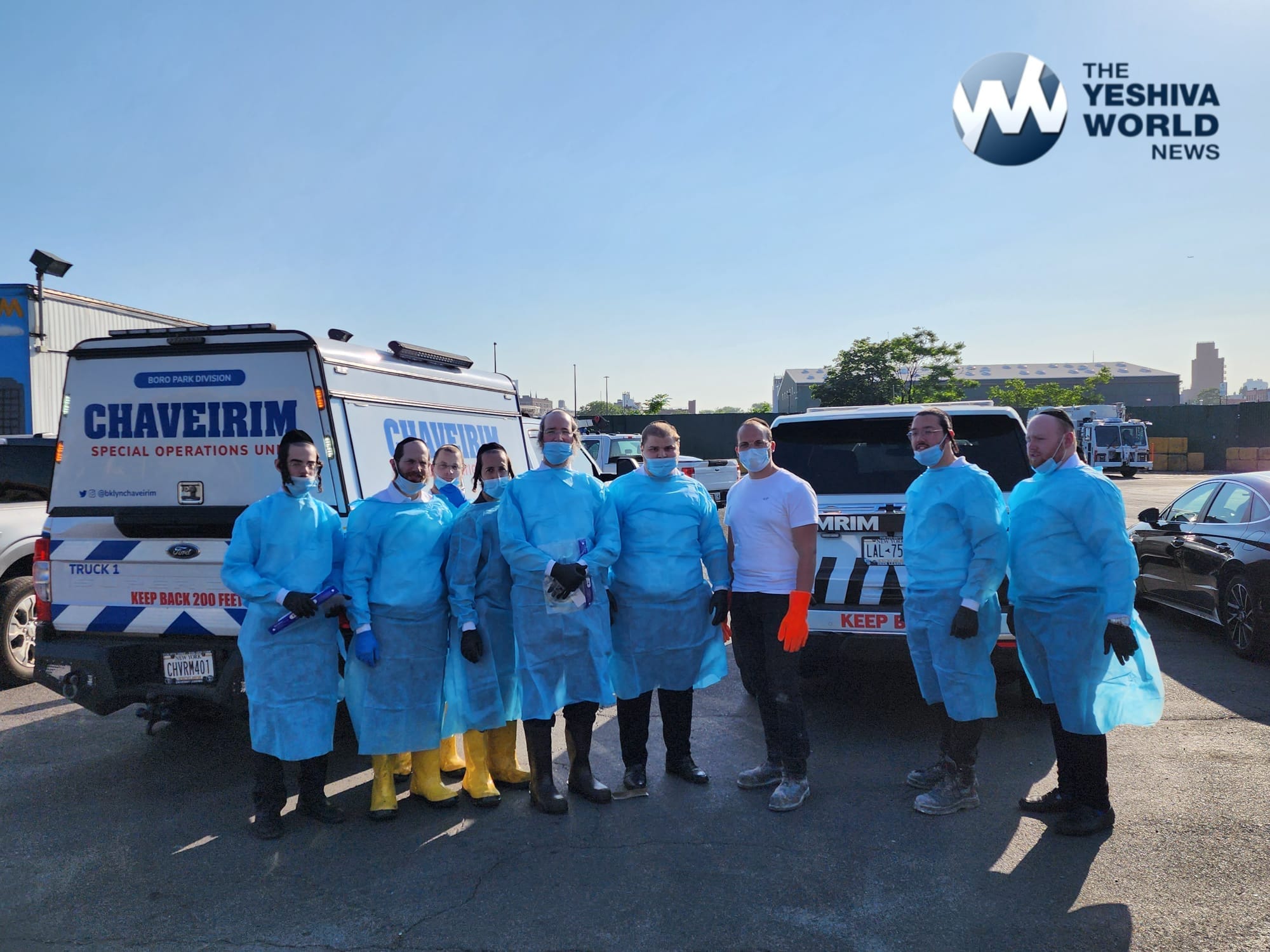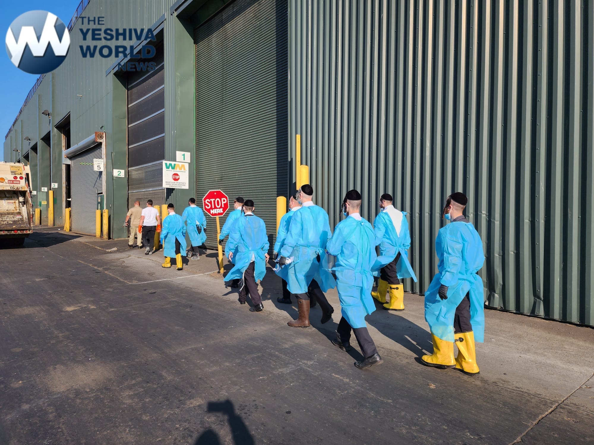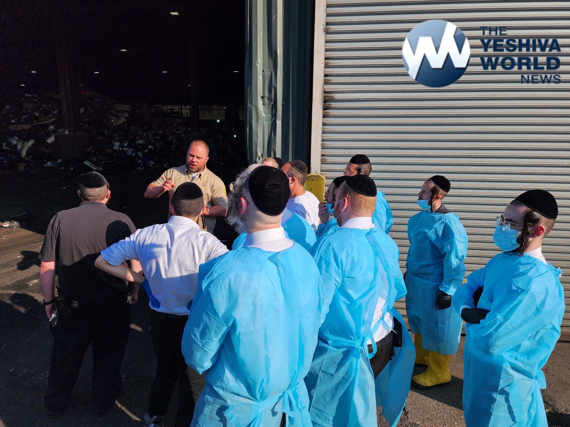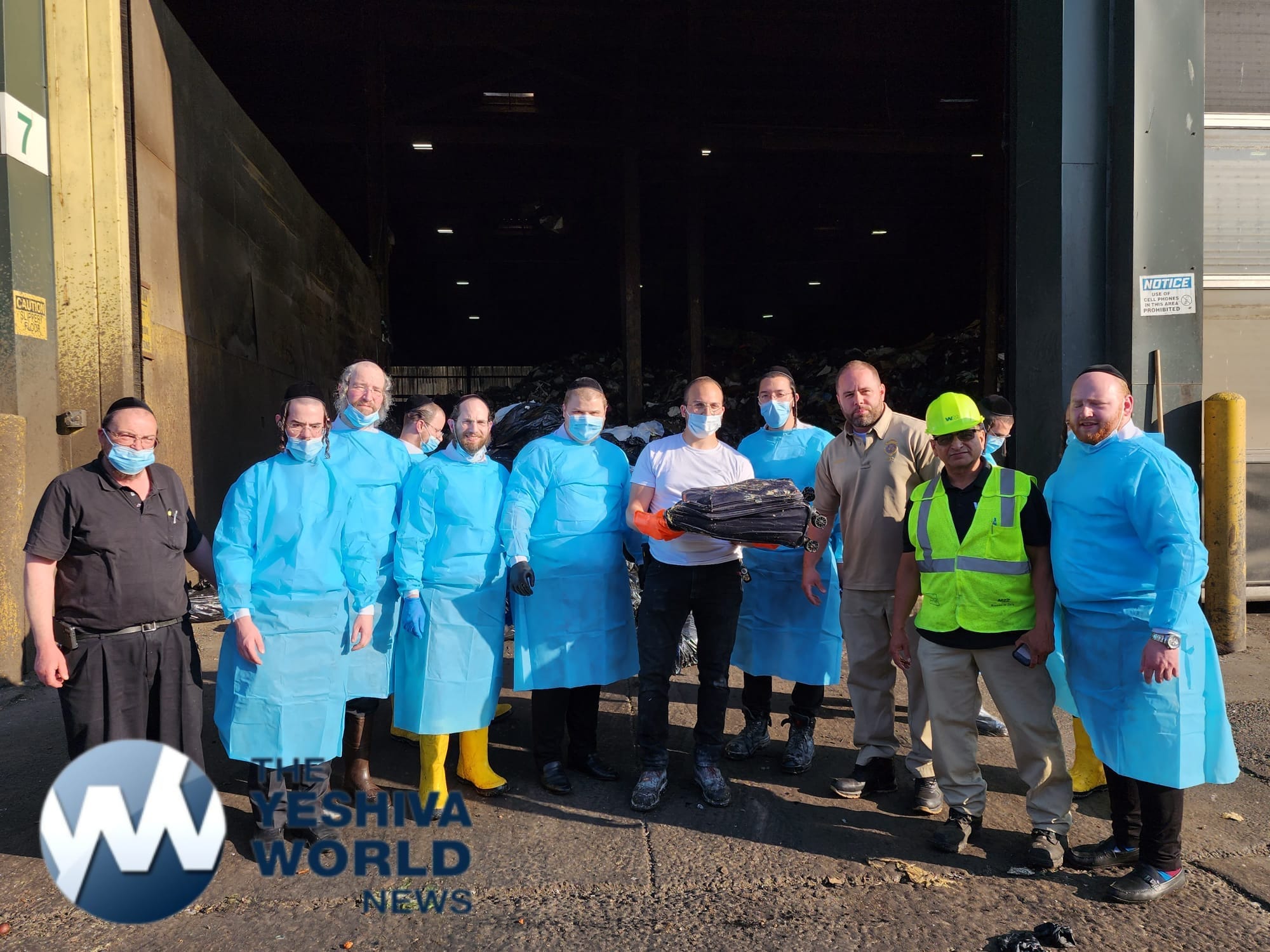 A group of volunteers from Chaveirim and Shomrim of Boro Park returned a suitcase containing a man’s tallis and tefillin to its rightful owner after sifting through piles of garbage at a waste management facility.