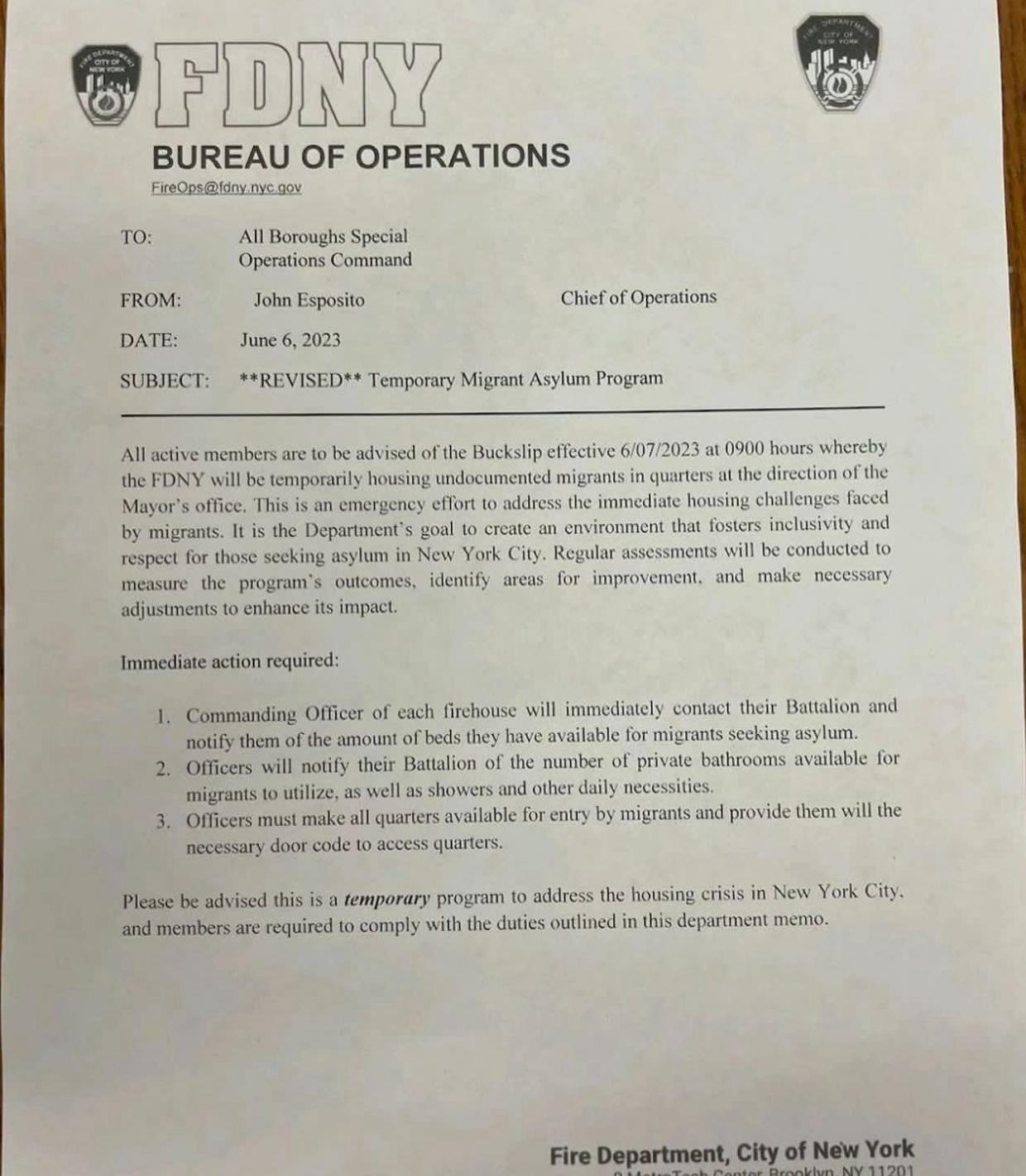 The debunked memo, dated June 6, alleged that the Mayor had issued an order instructing firehouse commanders to report the number of available beds for migrants seeking asylum to their respective battalions. Additionally, it falsely stated that officers would be required to provide door codes to the migrants. The spread of the memo on social media sparked outrage and concerns about potential security risks.