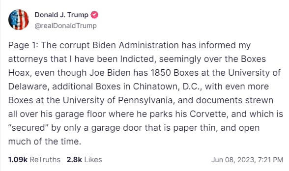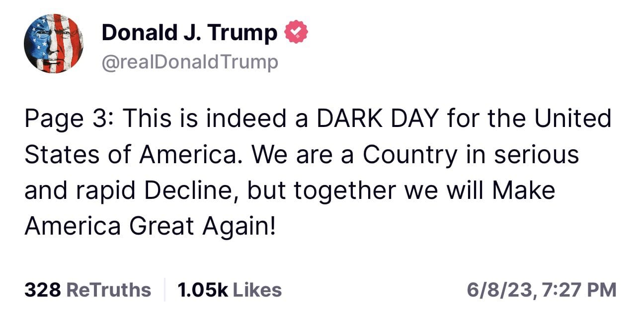 The EARLIEST this trial might begin would be October-November 2023 and depending on the number and scope of motions regarding discovery etc. and the time to litigate those pre-trial motions, it could slip into early 2024 at the start of the primary season. Trump’s team will definitely seek to delay the trial until AFTER the November 2024 elections, while using it as a foil for fundraising and having the deep state threat as their primary campaign theme (since the “stolen” 2020 election has gotten pretty stale).