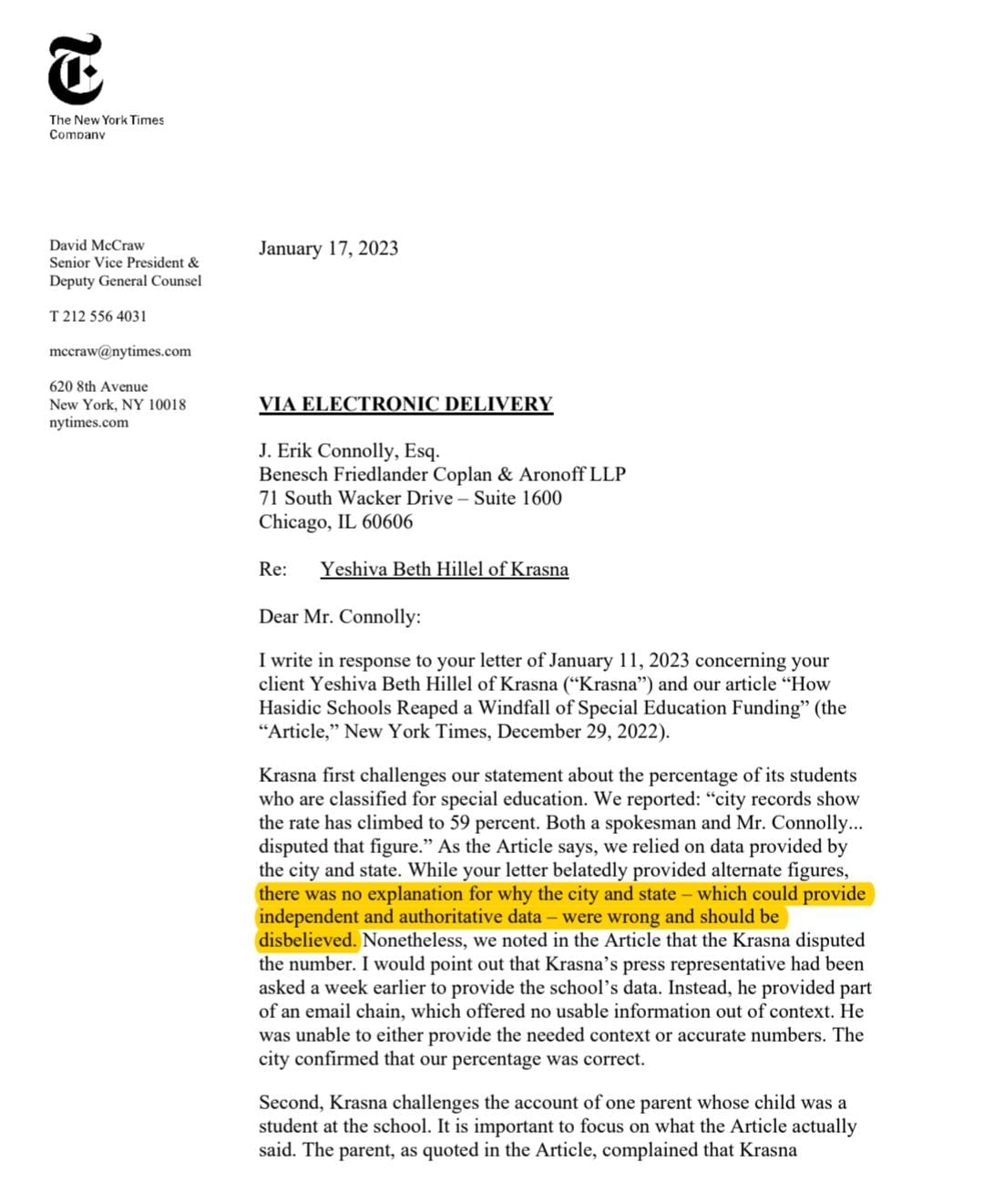 And, again, if you’d actually read the article, it does explicitly state that the yeshiva’s lawyers did respond to the Times.