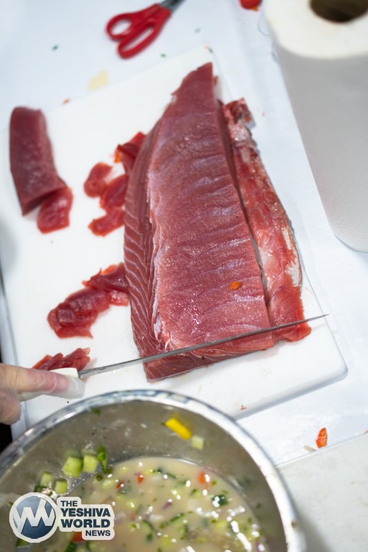 “Right now, we have Josh Boshnack breaking down a side of lamb, while Faigy Murray is frying sweet potato chips and Rochie Pinson is demonstrating challah braiding,” said Shifra Klein.