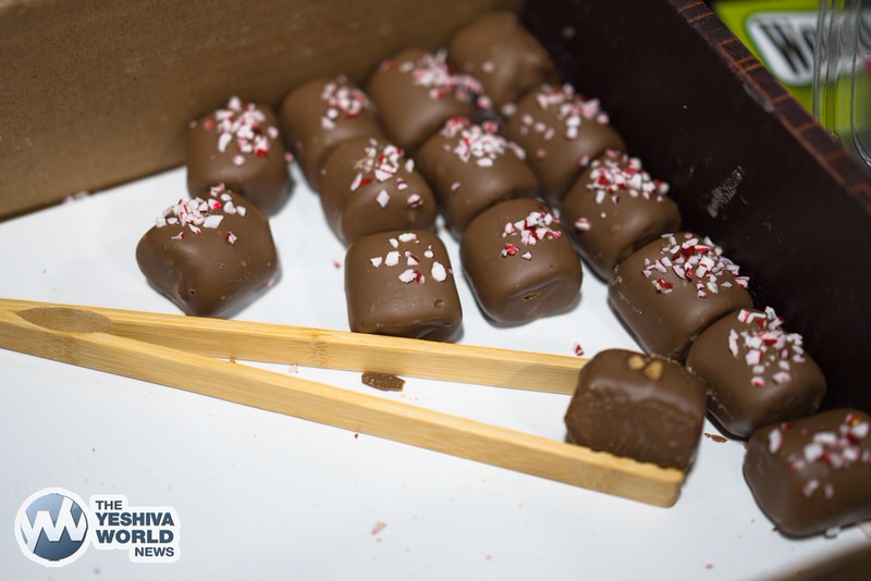 With Kosherpalooza not even attempting to disguise itself as a business event, an undercurrent of fun permeated the air and no one had to pretend that they weren’t there for the samples and goodies. D’vash Organics took a walk on the cheeky side, their bags printed with the slogan “wanna date?”, while a member of the 7th Heaven Chocolate team donned a pair of white feathered angel wings. Generous take-homes included Jerky Joy’s jars of jerky and Twisty’s assortment of delicious baked goods that just so happen to be gluten free, packed in colorful pastel boxes and accompanied by swirly pastel pens that you had to twist to open. And it was hard not to admire the creativity of Bread and Batter’s tiny round cases that looked like miniature versions of their brightly colored French macarons and Pretzel Plate’s self-described “sweetest business cards” – sealed pouches of chocolate covered pretzels that can be customized with any logo.