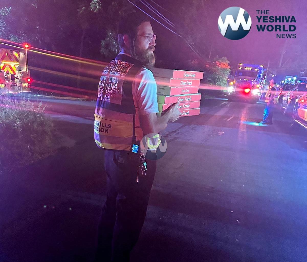 As firefighters worked late into the night, the Chaveirim members brought an additional 35 pizza pies and drinks, ensuring that the men who risked their lives to save others were well fed and refreshed as they performed their heroic work.