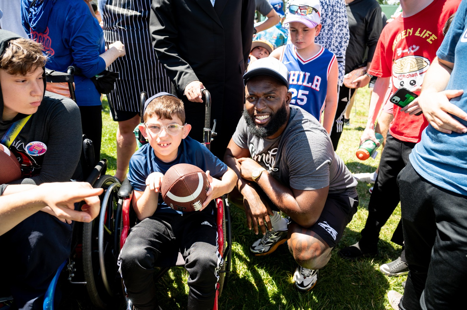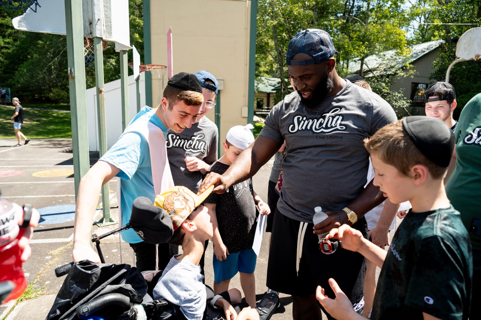 Camp Simcha, Chai Lifeline’s transformative summer haven for children with cancer, disabilities, and chronic medical conditions in Glen Spey, NY, received a special surprise visit from Super Bowl champion and star running back Leonard Fournette on Sunday, August 13.