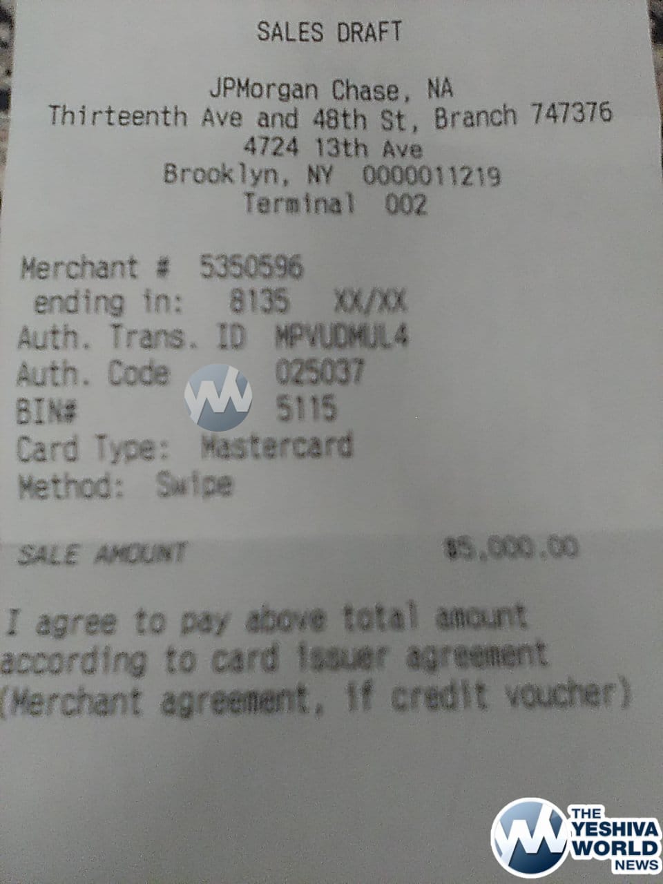 YWN has learned through a third party that the story occurred on Monday, when a kollel yungerman withdrew $5,000 in cash at the Chase Bank branch at 13th Avenue and 48th Street in Boro Park.