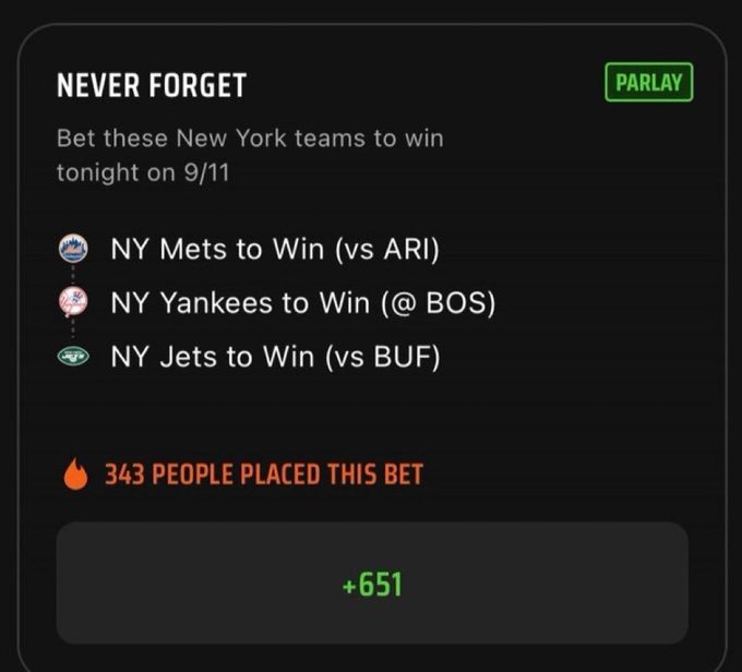 “We sincerely apologize for the featured parlay that was shared briefly in commemoration of 9/11,” the company wrote. “We respect the significance of this day for our country and especially for the families of those who were directly affected.”