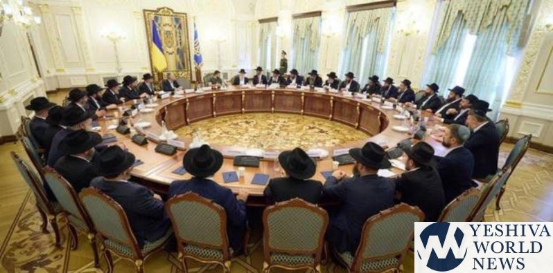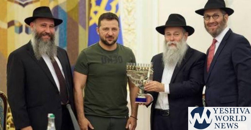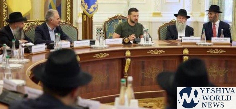 Ukrainian President Volodymyr Zelensky met with 32 Chabad shlichim and Rabbanim in his office on Thursday in a special event ahead of Rosh Hashanah.