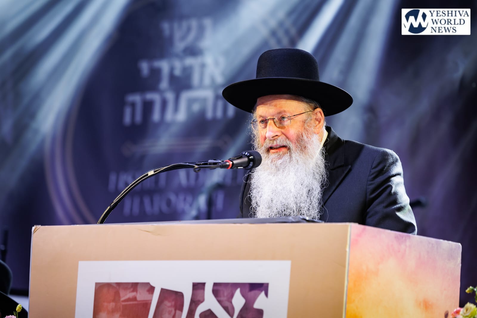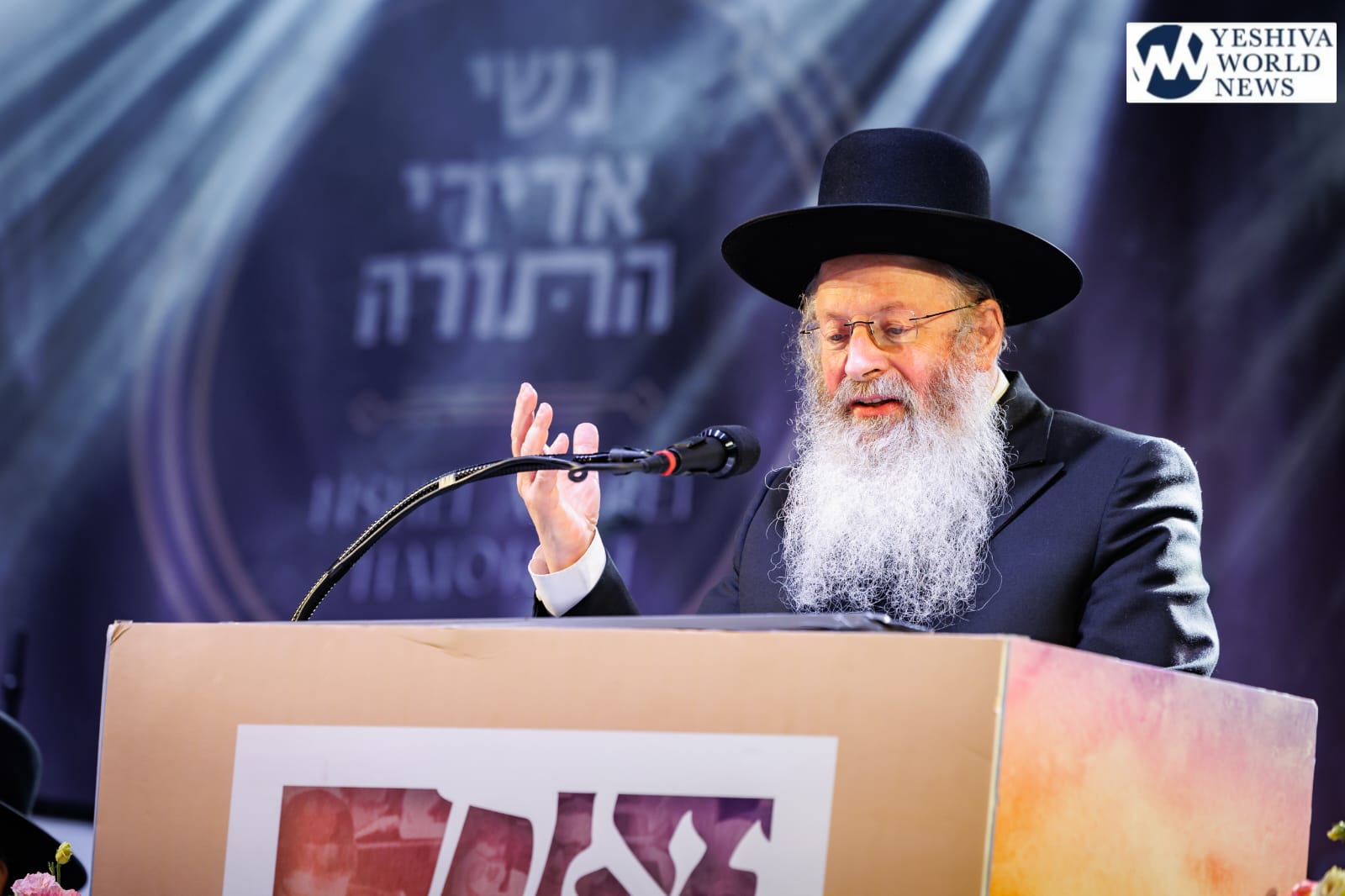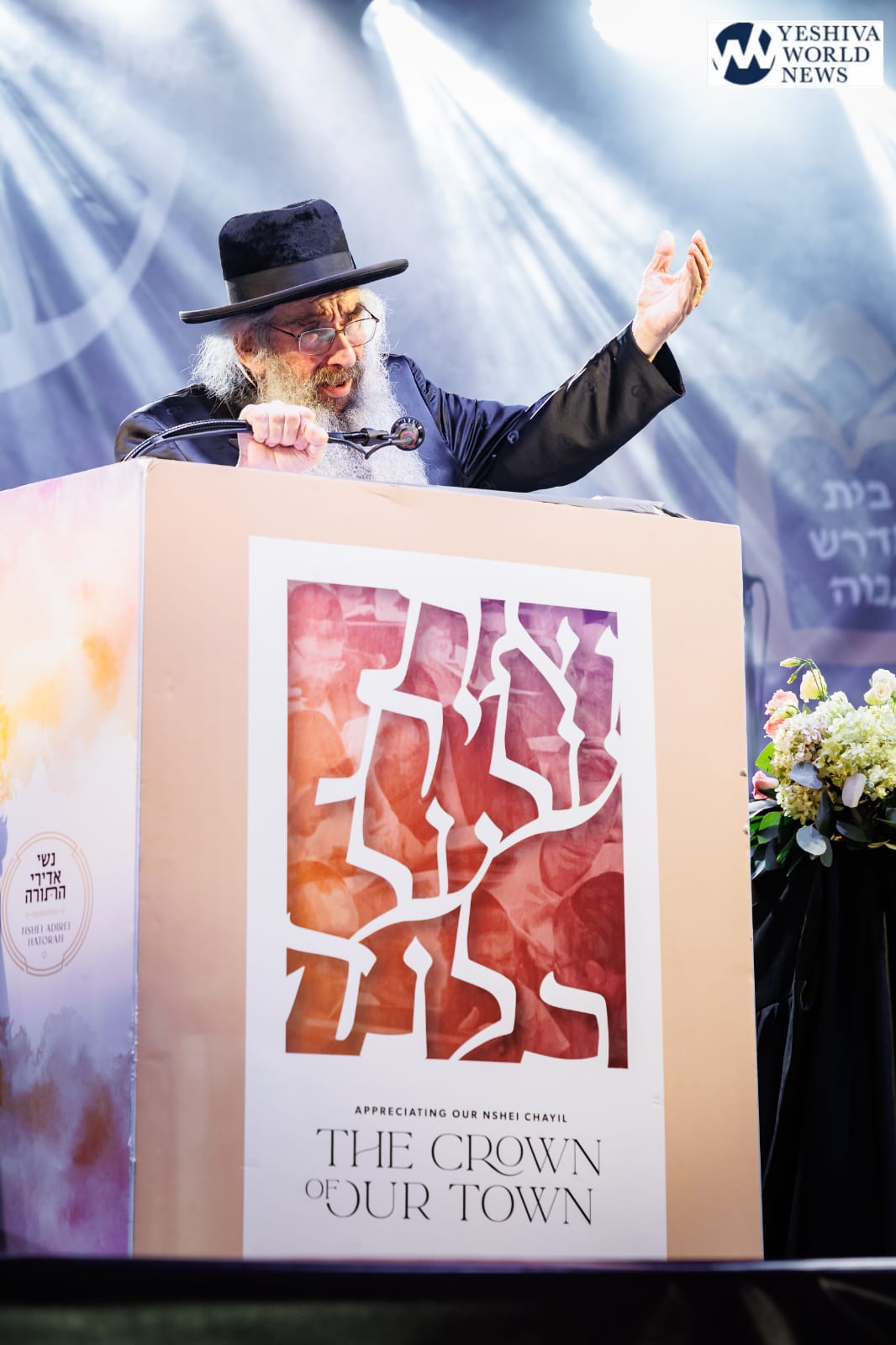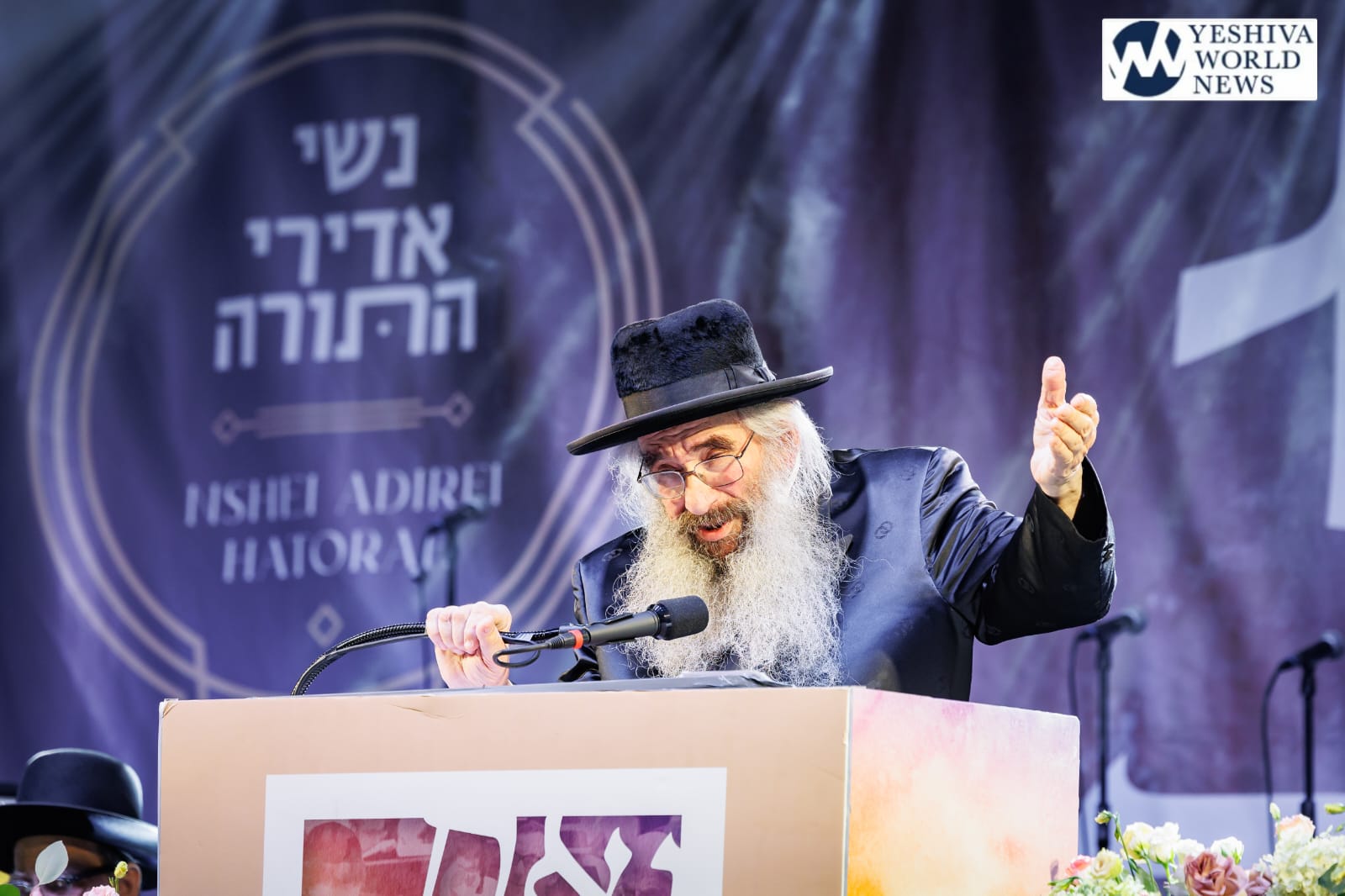 A sea of women filled the N’Shei Adirei HaTorah gathering last week, in a splendiferous tribute to the women standing beside their husbands steeped in Torah. The attendees were not accessories to the peaceful warriors that grace the confines of the bais medrash, but rather the backbone of their limud hatorah – the n’shei chayil without whom their learning would be impossible. Throngs of these heroines attended the event – 17,000 strong, including 7,000 from 25 BMG kollelim across the world.