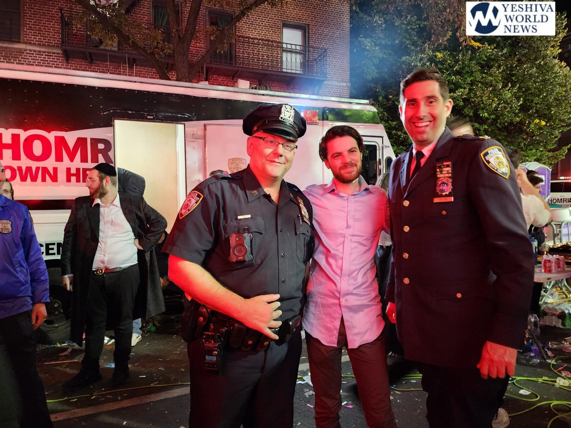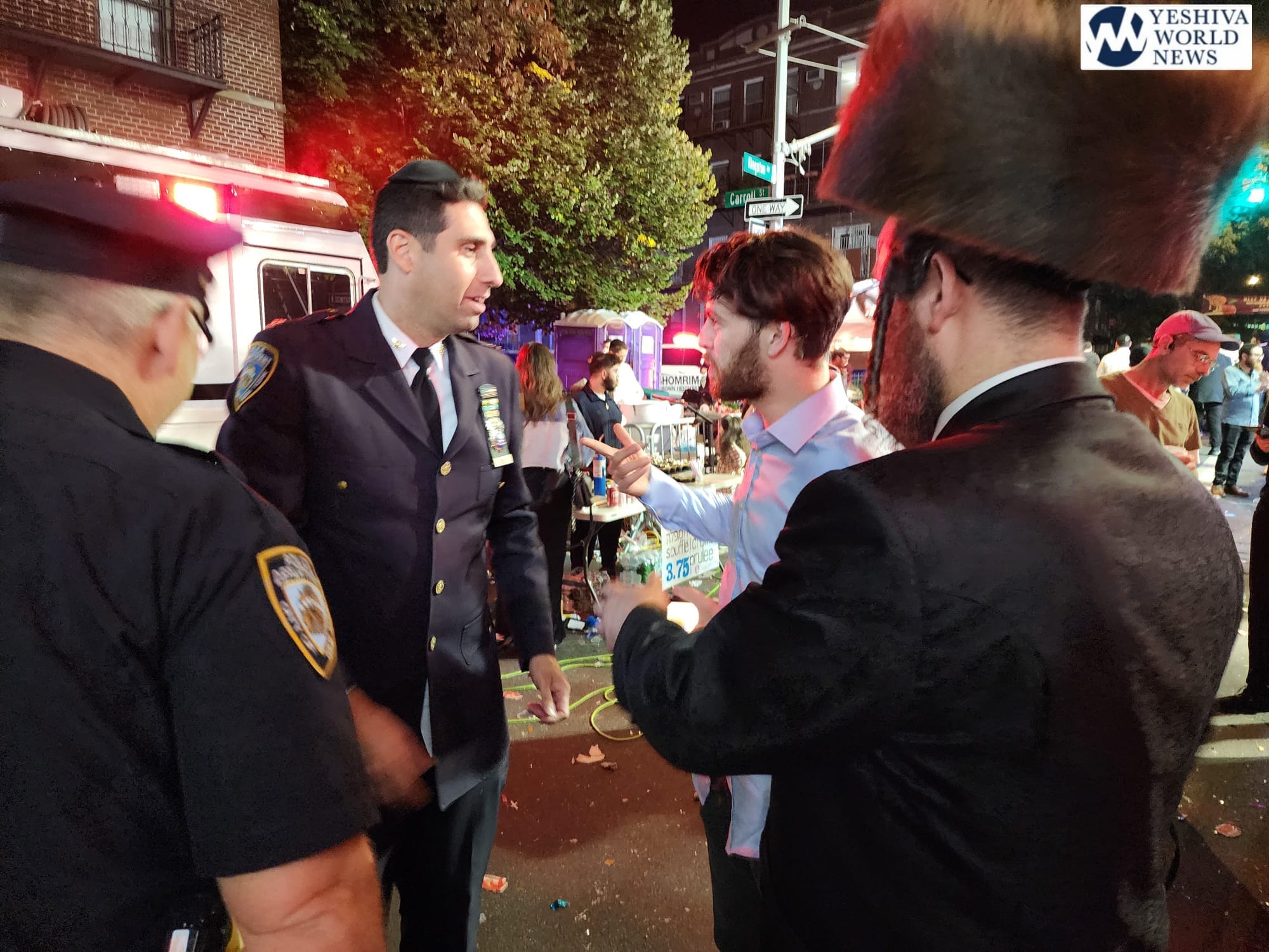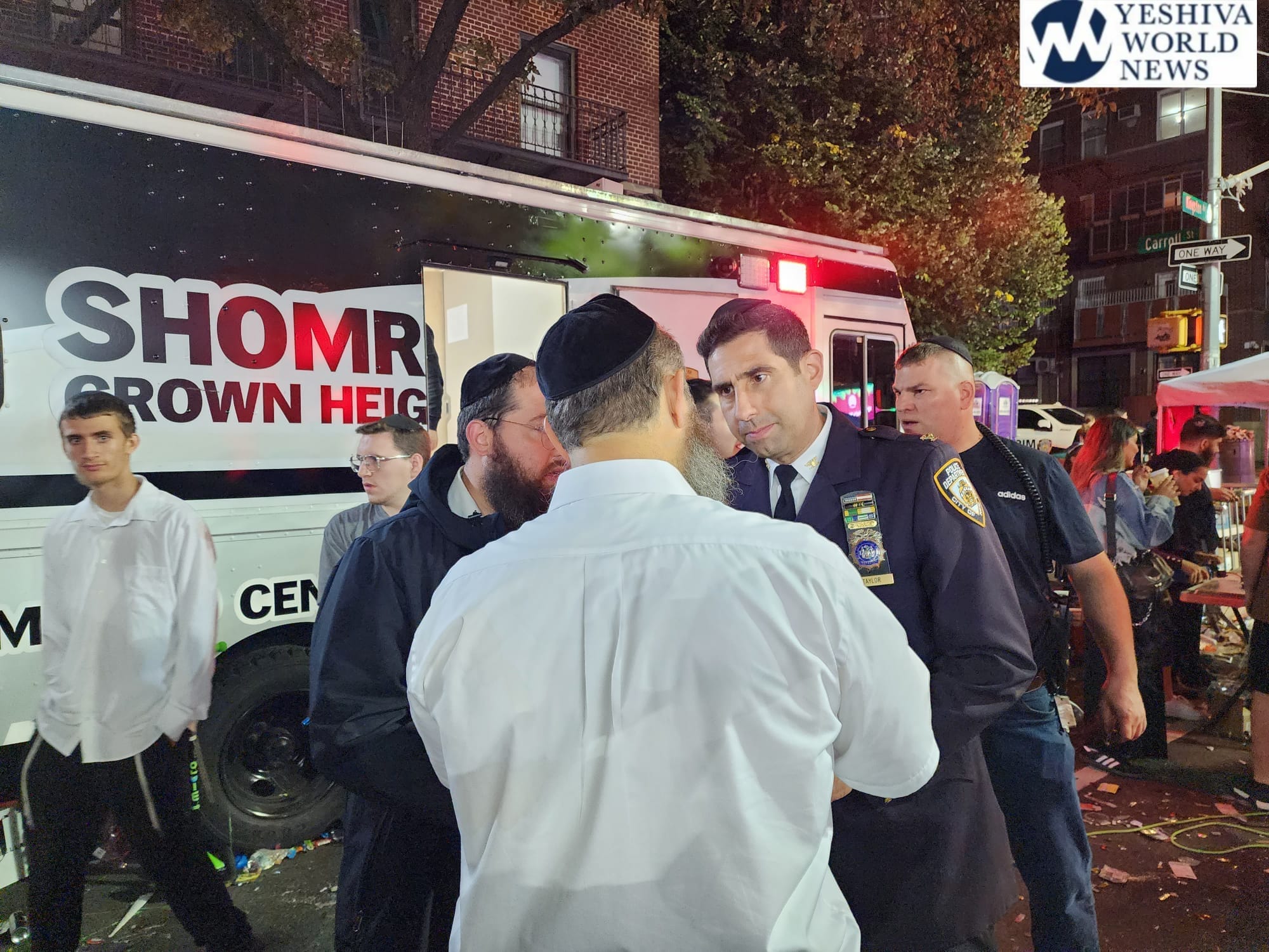 Early Wednesday morning (at 3:00AM) the Commanding Officer of Community Affairs, Inspector Richie Taylor, went on the stage to publicly thank his officers and Crown Heights Shomrim (Coordinators Gadi & Mendy Hershkop) for their dedication and hard work to ensure the safety of thousands each night.