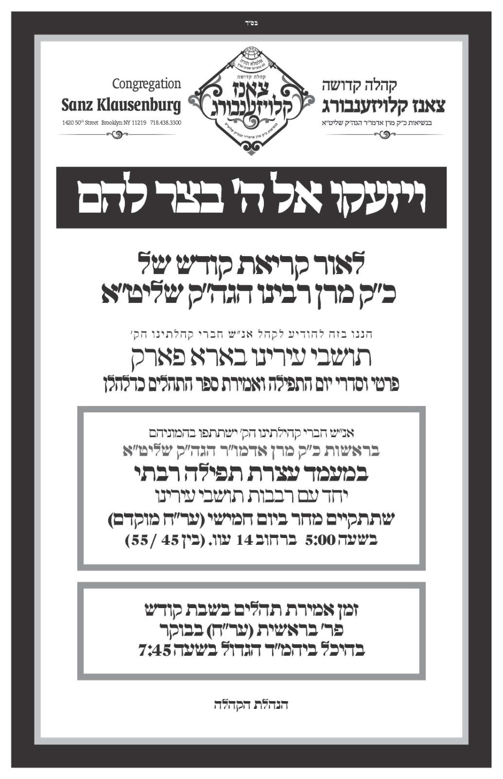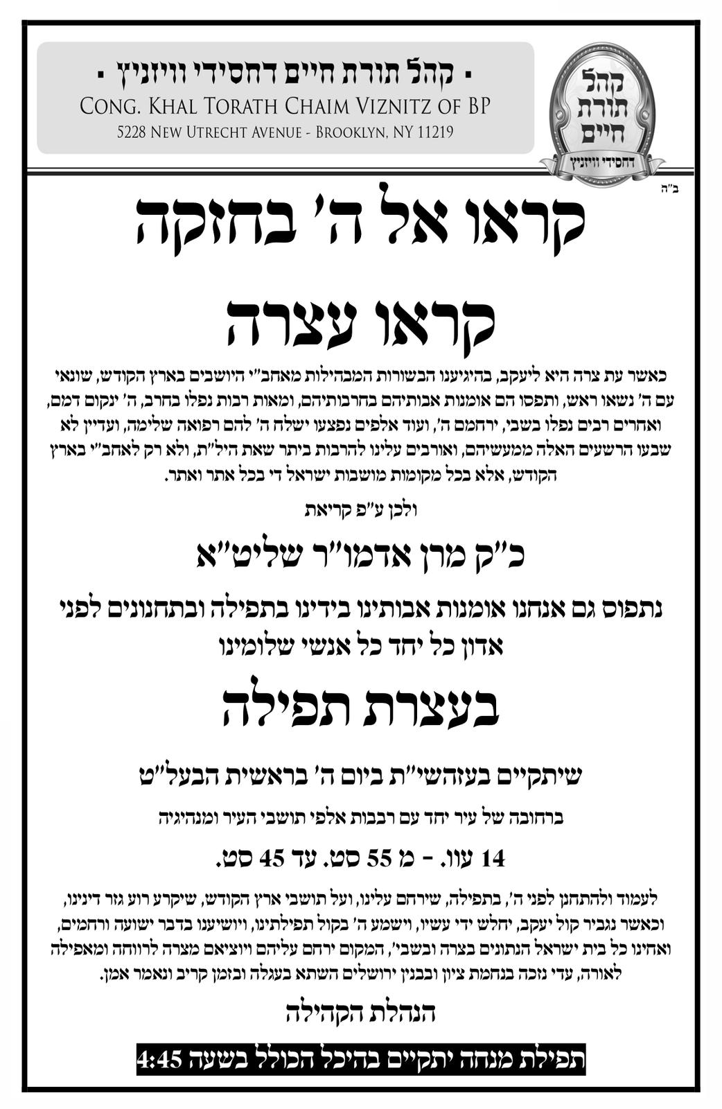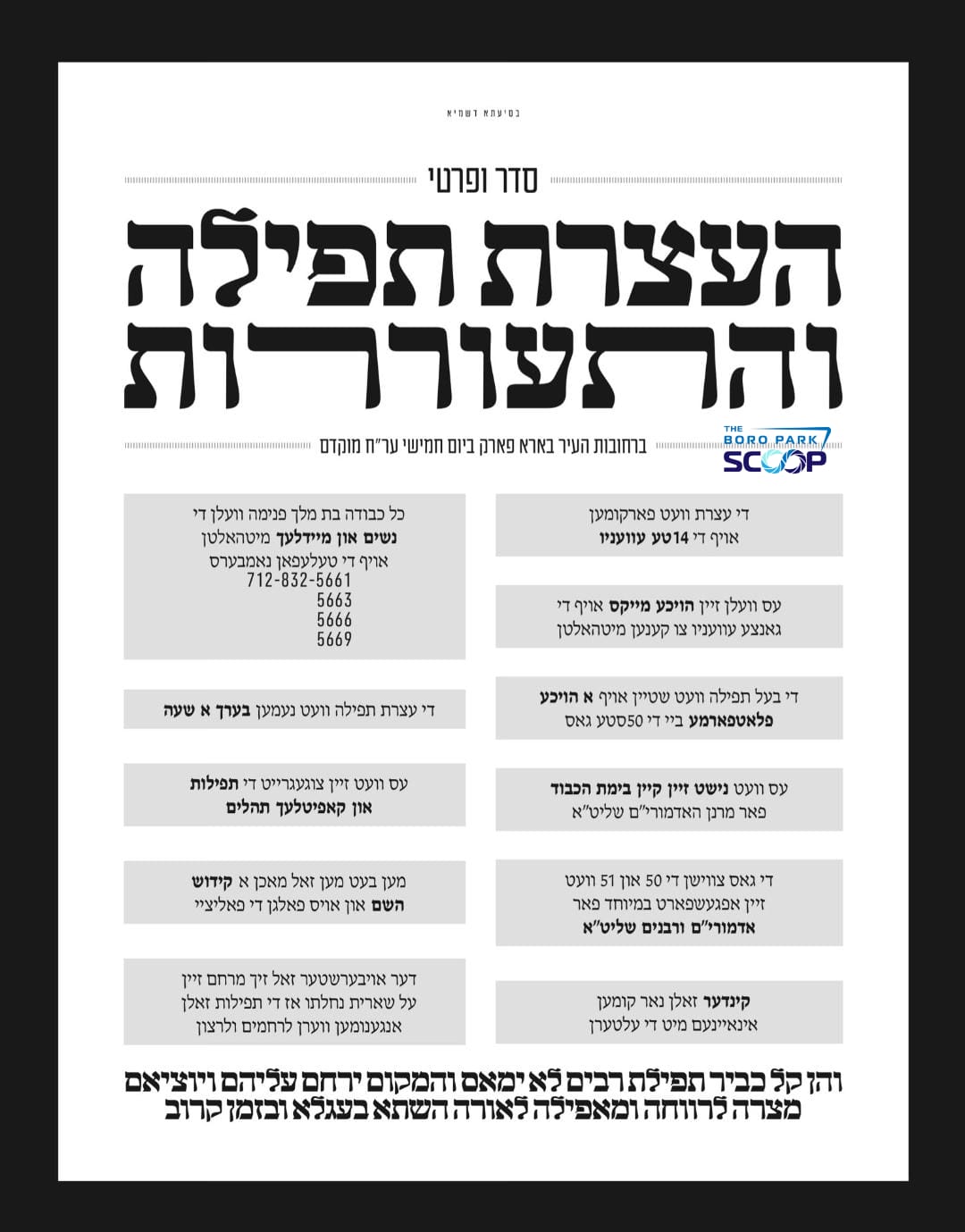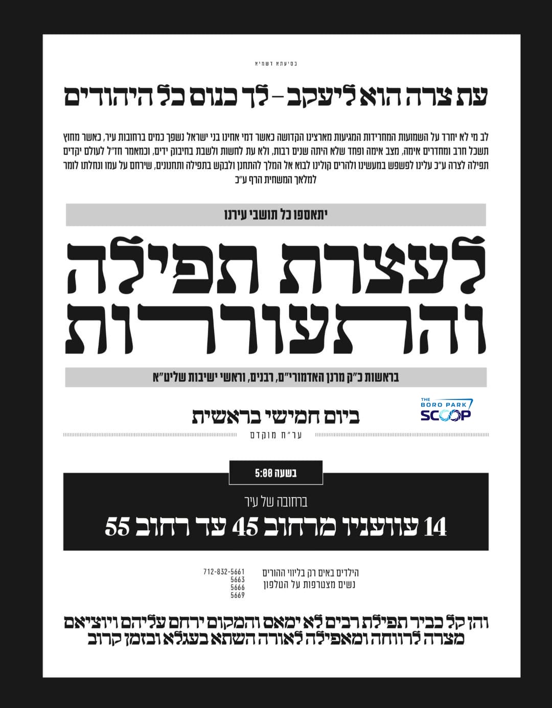 A mass Atzeres Tefilah is scheduled to take place in Boro Park on Thursday. Askonim are preparing for tens of thousands of people to possibly attend.
