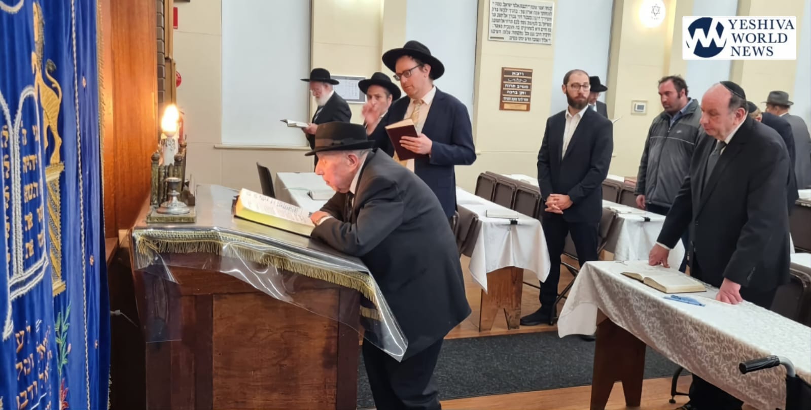 The baal tefillah at the Caulfield Bais Medrash in Melbourne, Australia, on Motzei Shabbos strode up to the amud with vim and vigor, his energy giving onlookers no impression that he is well over 100 years old. R’ Berish Aurbach yb”l was there to daven for the amud on his mother’s 103rd yahrtzeit, and nothing was going to stop him.