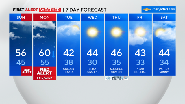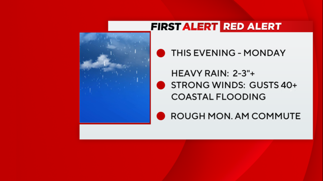 Forecasted rainfall totals and wind gusts have gone up. This has led to numerous more watches/warnings being issued by the weather service. Timing has also changed, with inclement weather lasting further into Monday now.