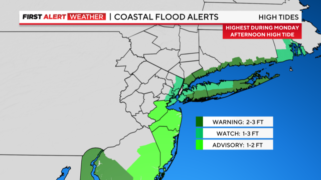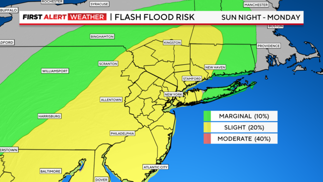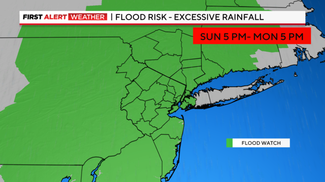 A Flood Watch goes into effect from 5 p.m. Sunday until 5 p.m. Monday and now includes all counties, except Nassau and Suffolk.