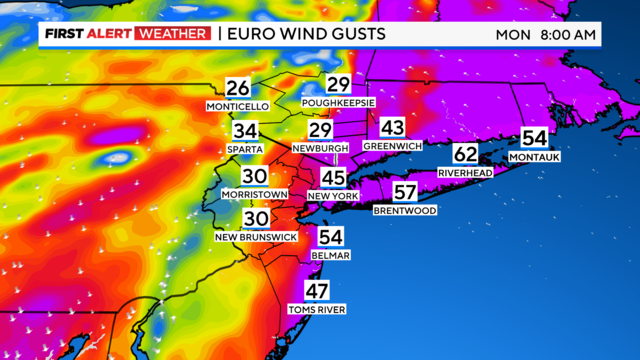 Those winds may gust between 30-50 mph at times. Higher gusts are possible at the immediate coast, particularly coastal areas of Long Island and Connecticut, where gusts may reach up to 60 mph.