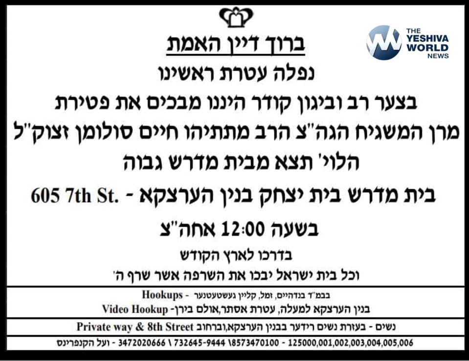 Upwards of 50,000 people are expected to attend the levaya today of the venerated BMG mashgiach Rav Mattisyahu Salomon zt”l, who was niftar Tuesday night at the age of 86.