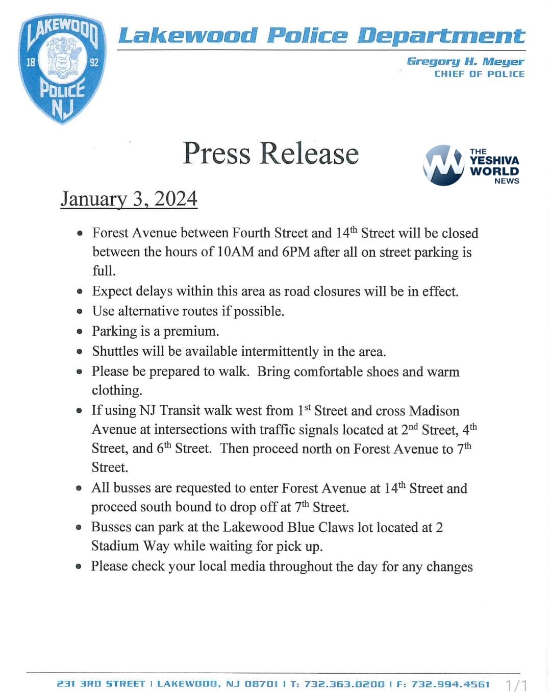 Many Lakewood businesses will be closed for the duration of the Levaya.