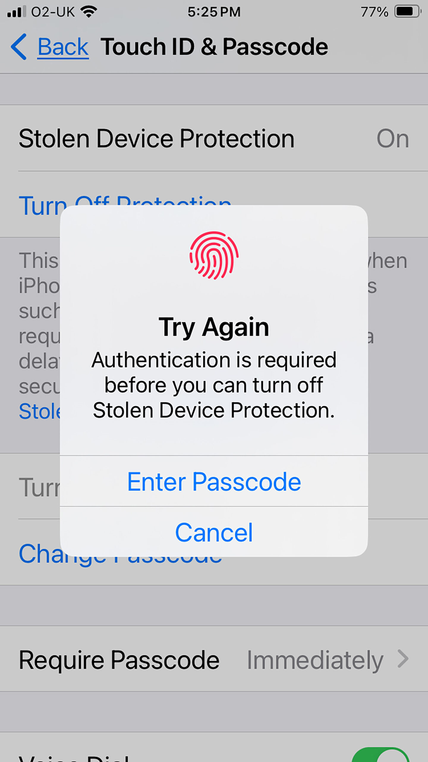 And that’s the only way — the new feature doesn’t let someone use the passcode or any other backup method.